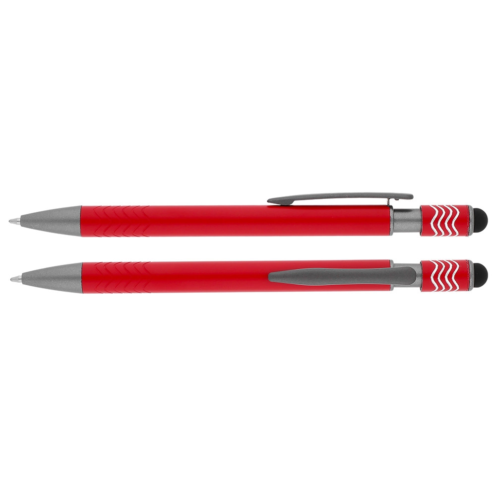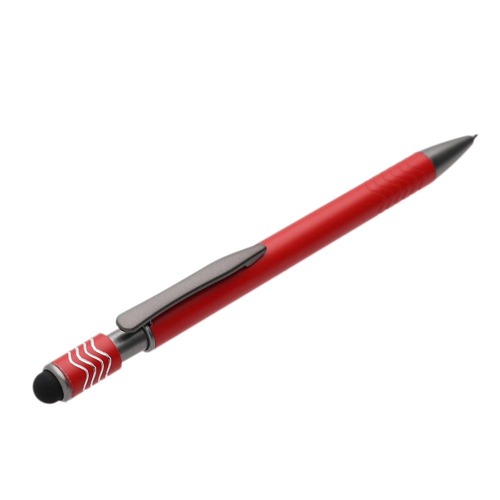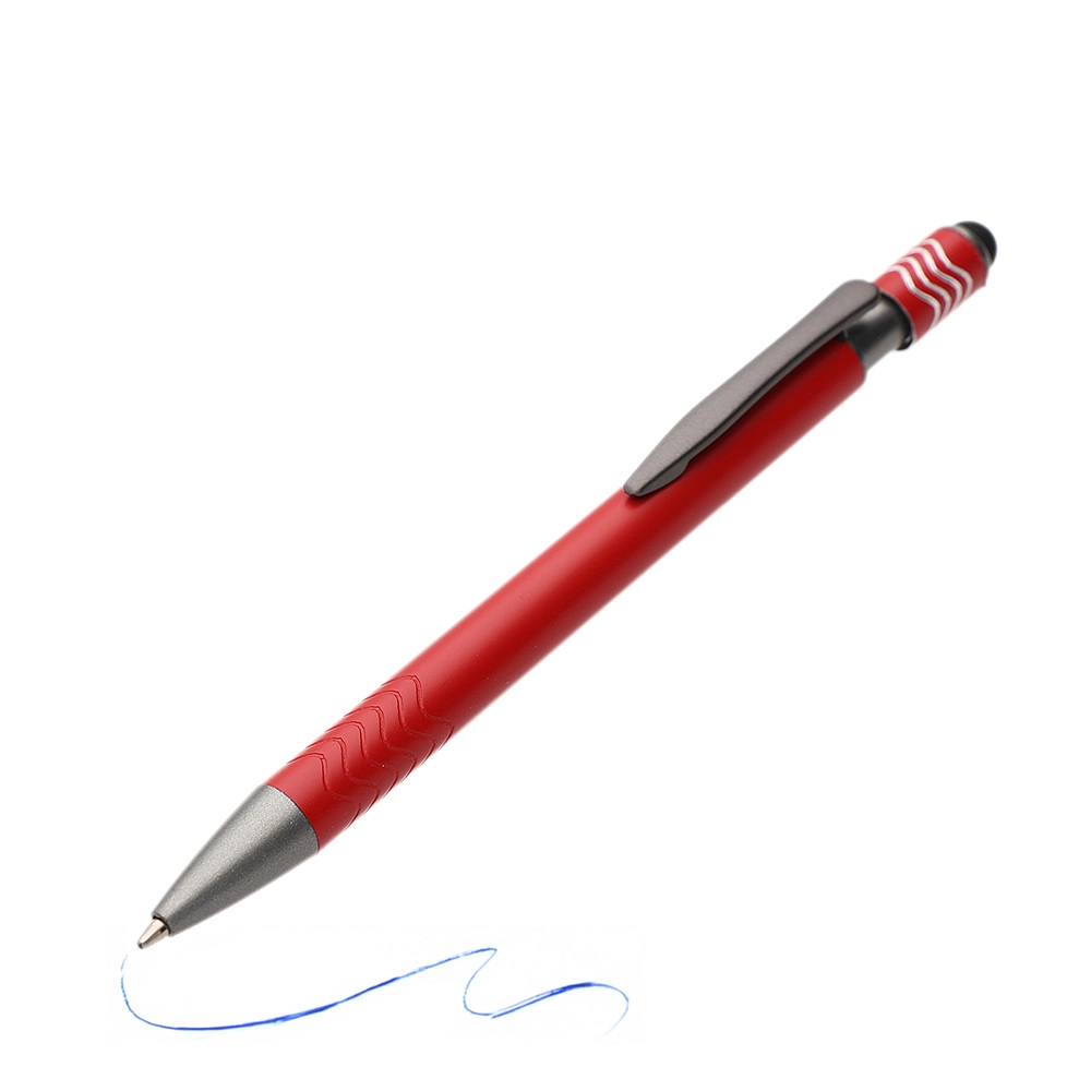 Элегантная алюминиевая шариковая ручка с вращающимся антистресс наконечником, стилусом и механизмом нажатия. Матовая поверхность корпуса украшена волнистой гравировкой.