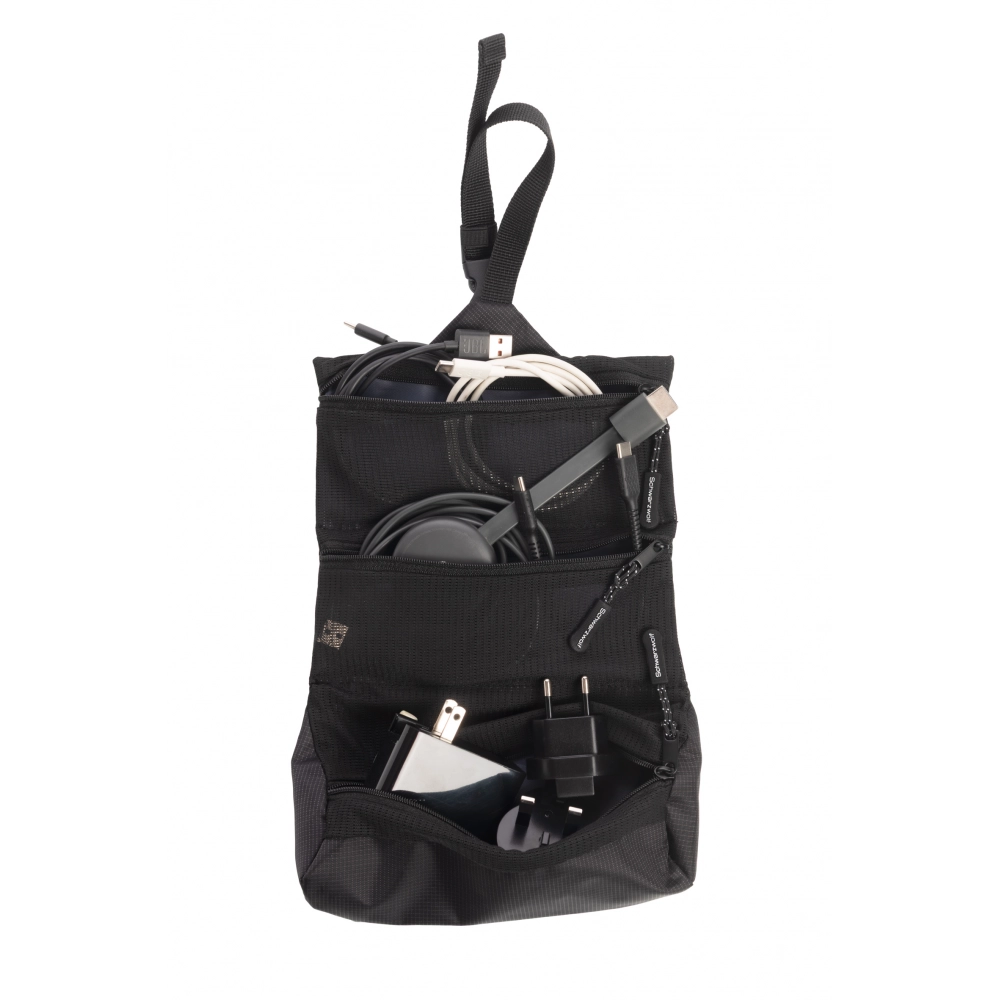 Практичная многофункциональная сумка Schwarzwolf для косметики и мелких предметов в черном цвете, идеально подходящая для комфортных путешествий. Может использоваться как органайзер для электроники. Сумка оснащена тремя сетчатыми карманами на молнии. В комплект входит пряжка, с помощью которой можно закрыть свернутую сумку или создать петлю для подвешивания.