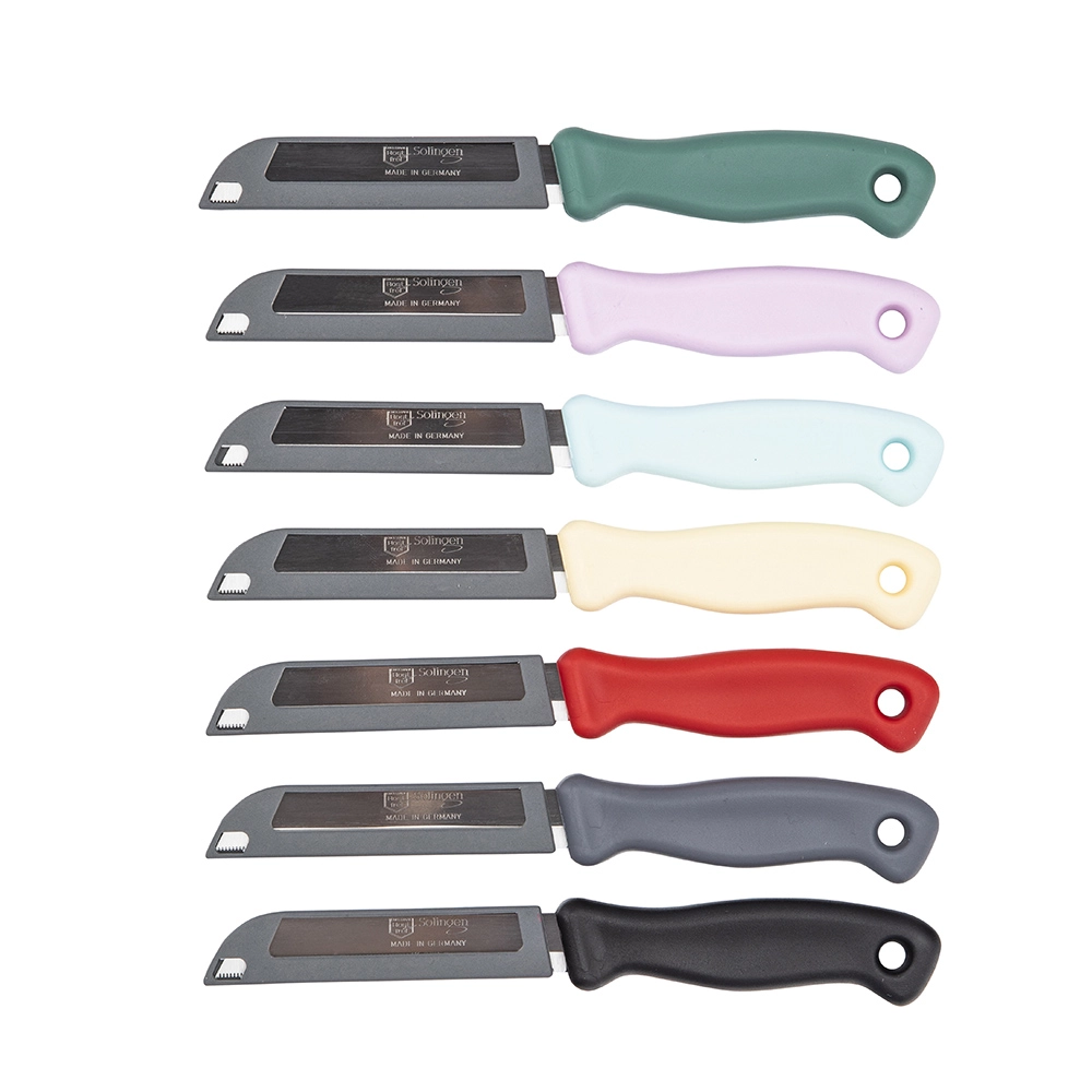 Кухонный нож с лезвием Solingen типа пилка длиной 9 см — это универсальный инструмент, который облегчает точную нарезку хлеба, овощей и фруктов. Благодаря зубчатому лезвию из высококачественной нержавеющей стали, нож обеспечивает плавный рез без сдавливания нежных продуктов. Легкая и эргономичная рукоятка гарантирует комфорт в использовании и надежный захват, что делает нож незаменимым в повседневной кухне.
