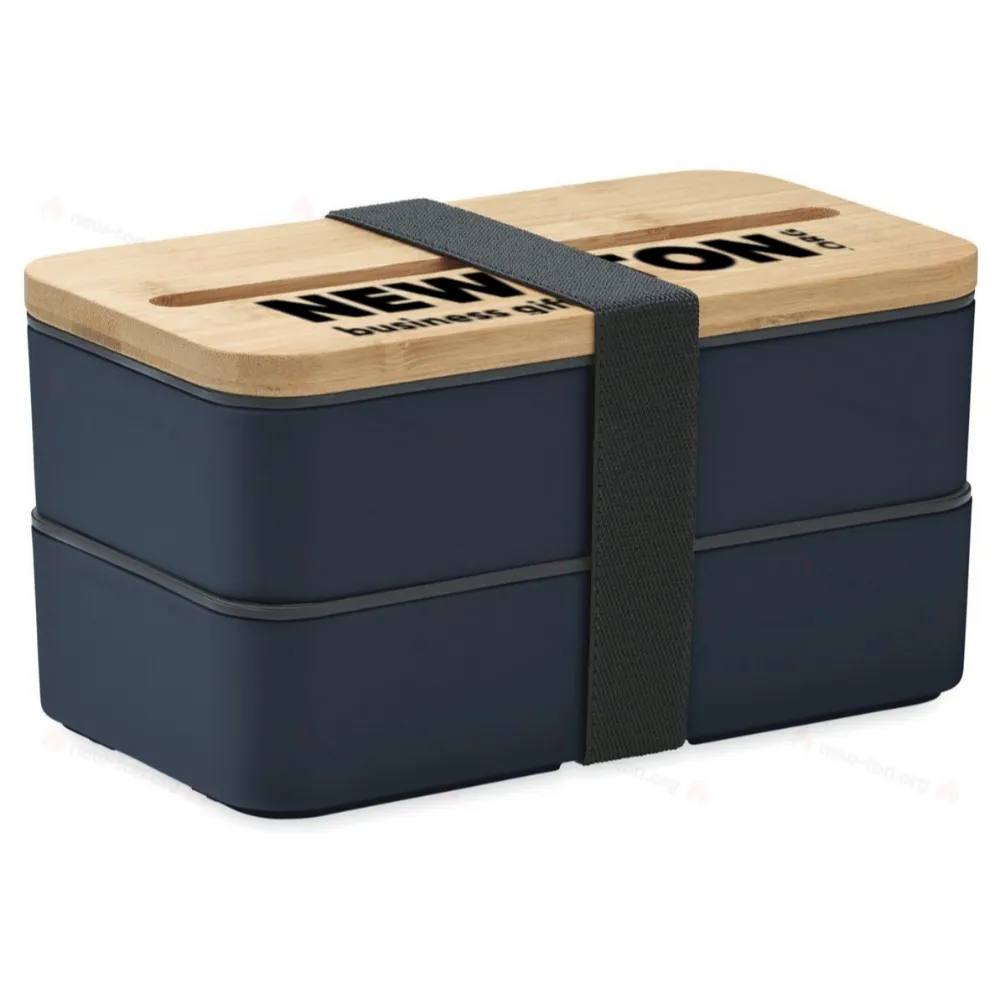 Двухуровневая ланч-бокс из полипропилена с съемным разделителем и тремя столовыми приборами, с крепящейся полиэстеровой лентой и крышкой из бамбука. Крышка также может использоваться как подставка для телефона. Объем: 400 мл (2x). Бамбук является натуральным материалом, поэтому возможны небольшие вариации в цвете и размере каждого изделия, что может повлиять на конечный результат декорирования.