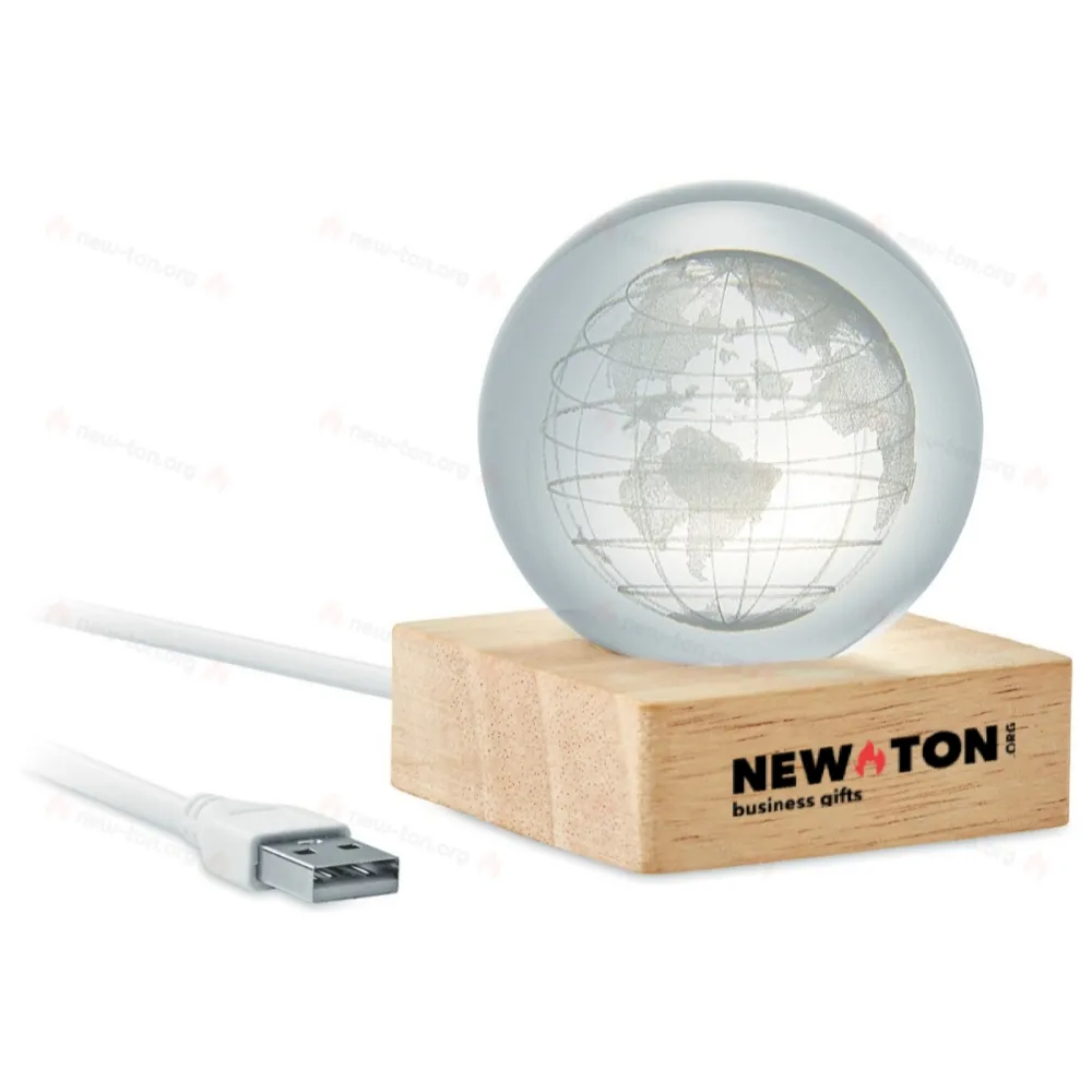 Стеклянный шар глобус со светодиодной подсветкой (100 люмен) на деревянной подставке. В комплект входит USB-кабель для зарядки (90 см). FSC 100% | W18.8 | FSC-C213206