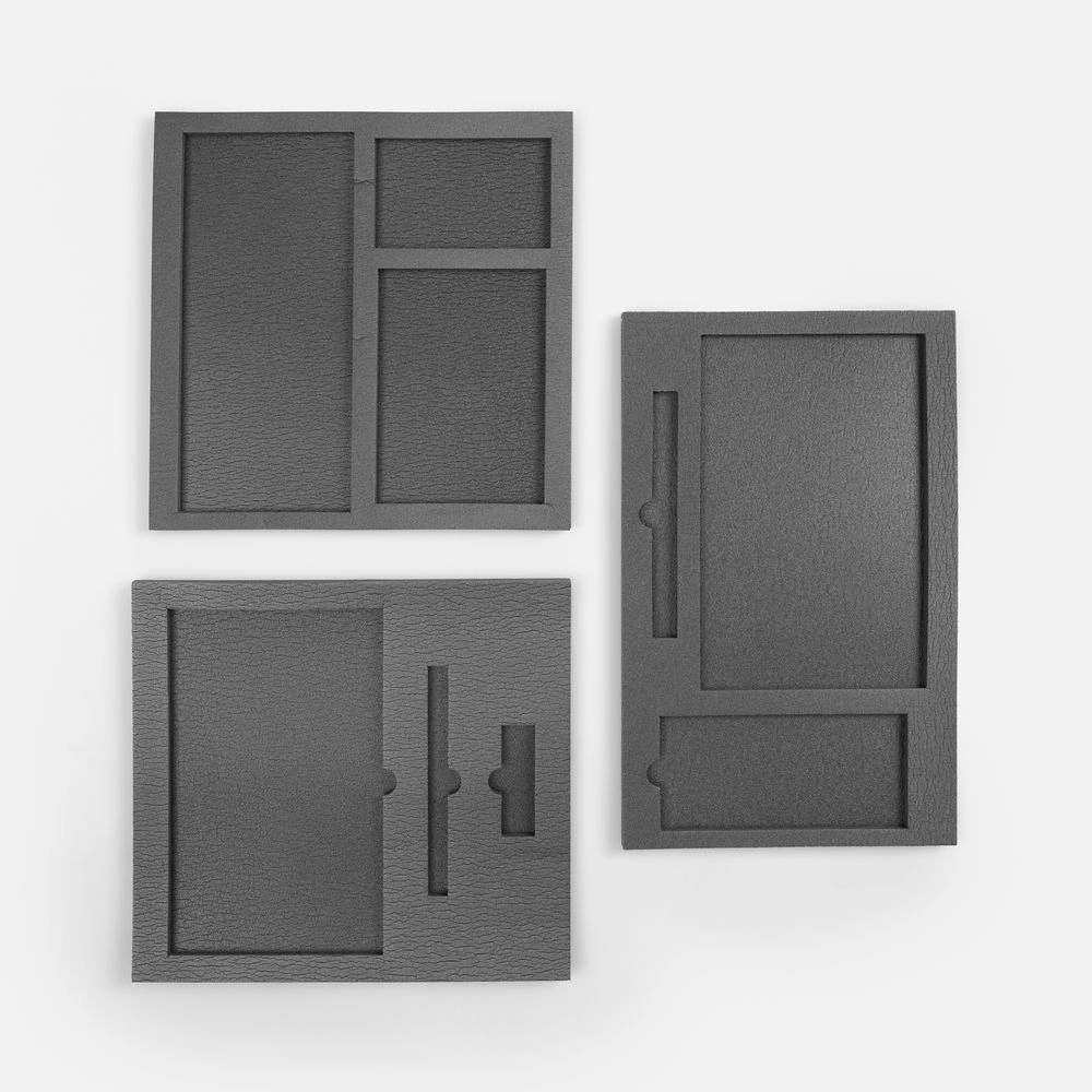 Ложемент, изготовленный из материала 500 черного цвета, представляет собой многослойную конструкцию, состоящую из нижнего слоя толщиной 5 мм и верхнего слоя толщиной 10 мм. В соответствии с утвержденным макетом, проемы для размещения предметов могут быть спроектированы как в одном, так и в обоих слоях. Стоимость изготовления ложемента включает все необходимые материалы и технологические операции, но не включает разработку технического макета, которая является отдельной услугой и оплачивается дополнительно. Сборка комплектов с использованием изготовленных ложементов также осуществляется за отдельную плату. Приложите к заказу оригинал-макет в формате выполненный согласно техническим требованиям. С техническими требованиями можно ознакомиться на вкладе Данный артикул подходит для коробок: и