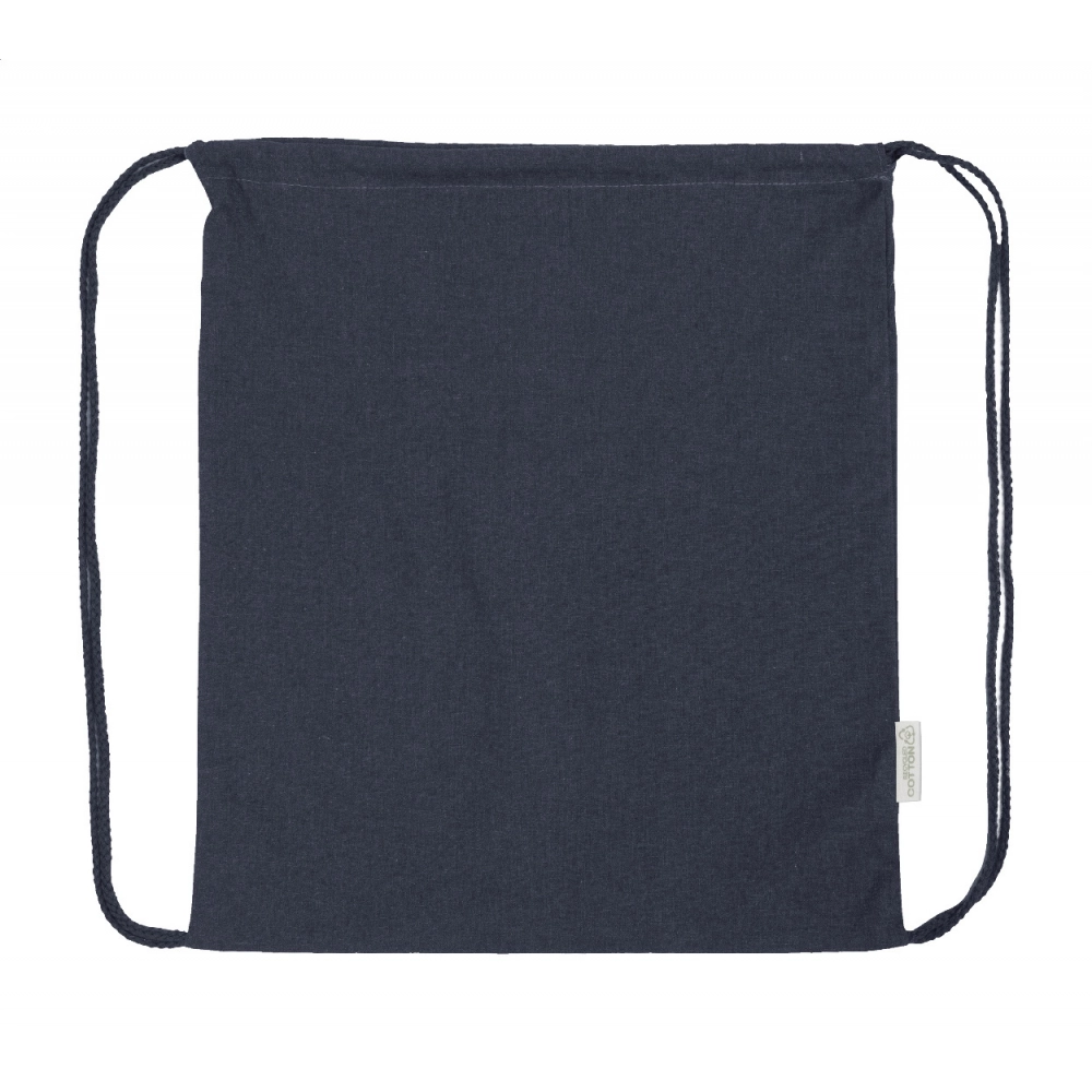 Мешок с завязками из 70% переработанного хлопка и 30% полиэстера RPET, 140 г/м². С отличительной этикеткой из переработанного хлопка.