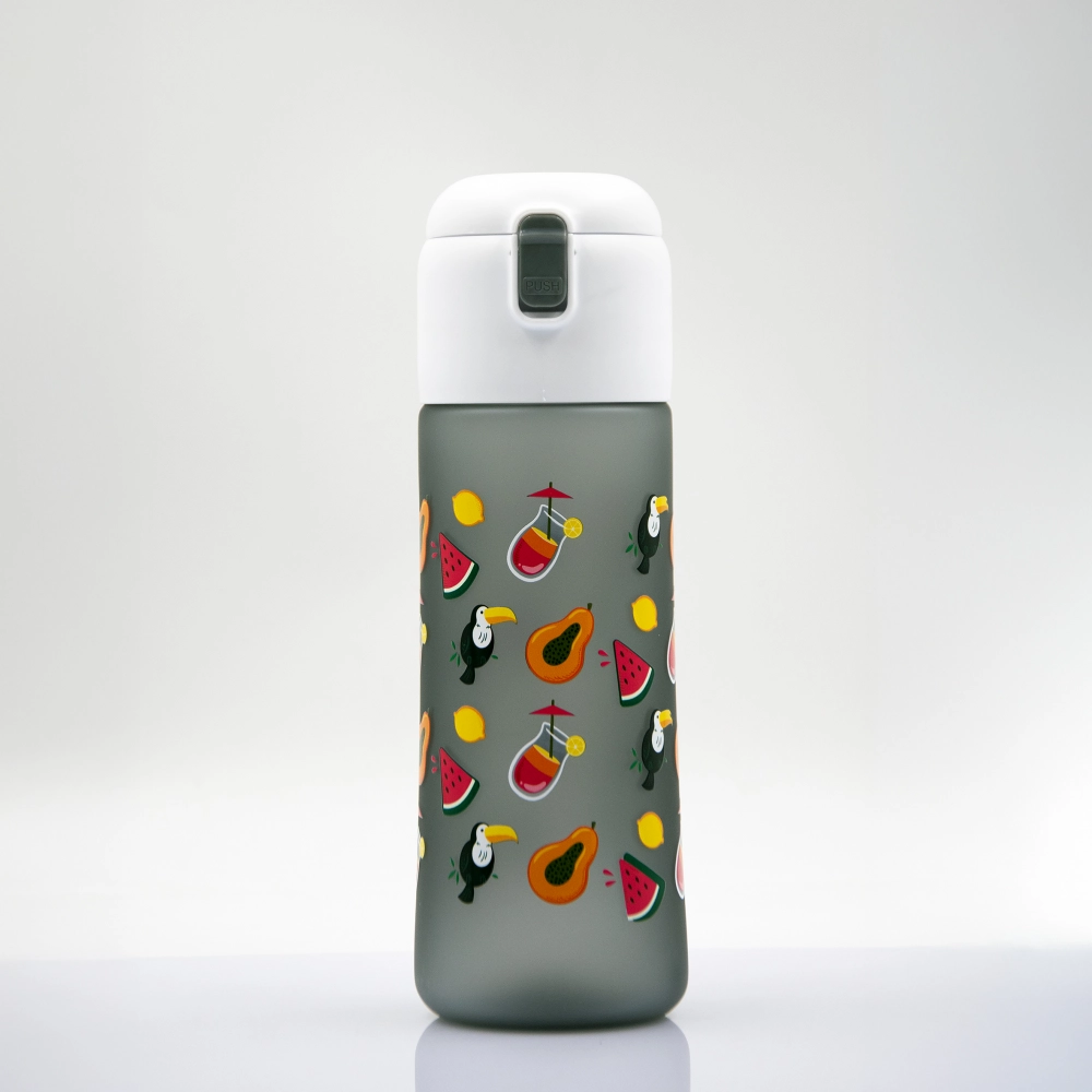 Откидная крышка с кнопкой: интуитивно понятный механизм открывания одной рукой, который удобно использовать, когда вы в движении, а наличие фильтра-ситечка позволит добавить различные ягоды или фрукты - кусочки не будут попадать в питьевое горлышко.