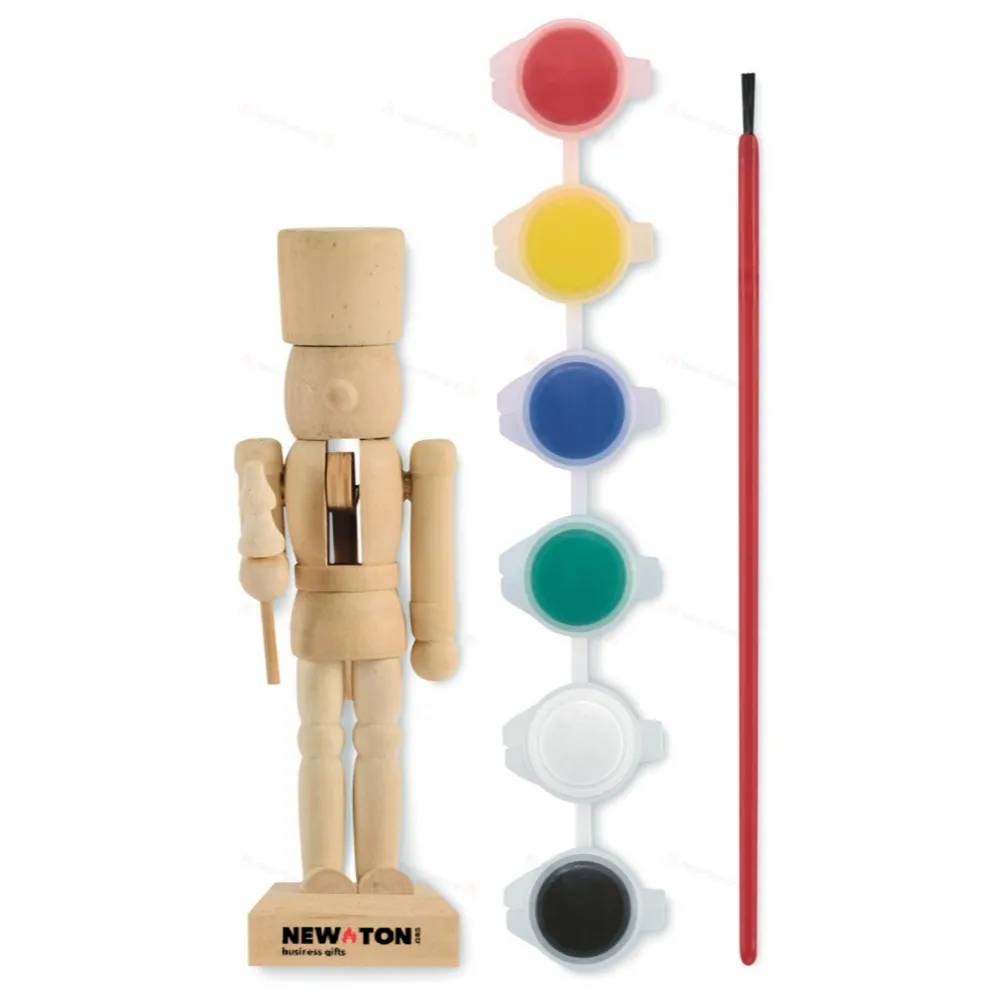 Набор для рисования в виде деревянного щелкунчика с 6 красками на водной основе и кистью.