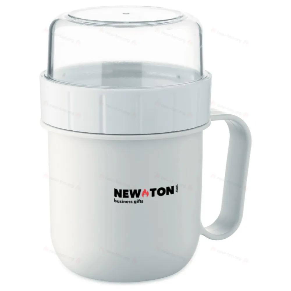 Кружка и контейнер с пластиковой крышкой для перекуса на ходу. Состоит из 2 отделений емкостью: 450 мл и 160 мл. Герметичный.