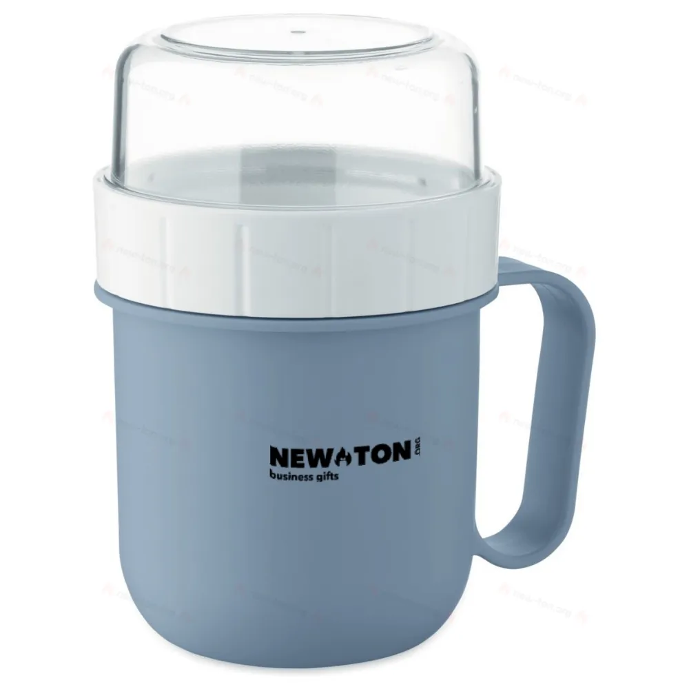 Кружка и контейнер с пластиковой крышкой для перекуса на ходу. Состоит из 2 отделений емкостью: 450 мл и 160 мл. Герметичный.