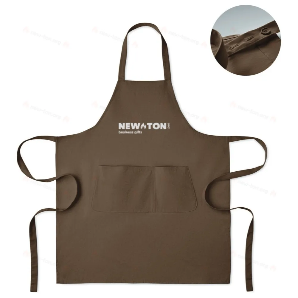 Кухонный фартук с большим передним карманом и двумя отделениями из органического хлопка плотностью 240 г/м². С регулируемым шейным ремешком.