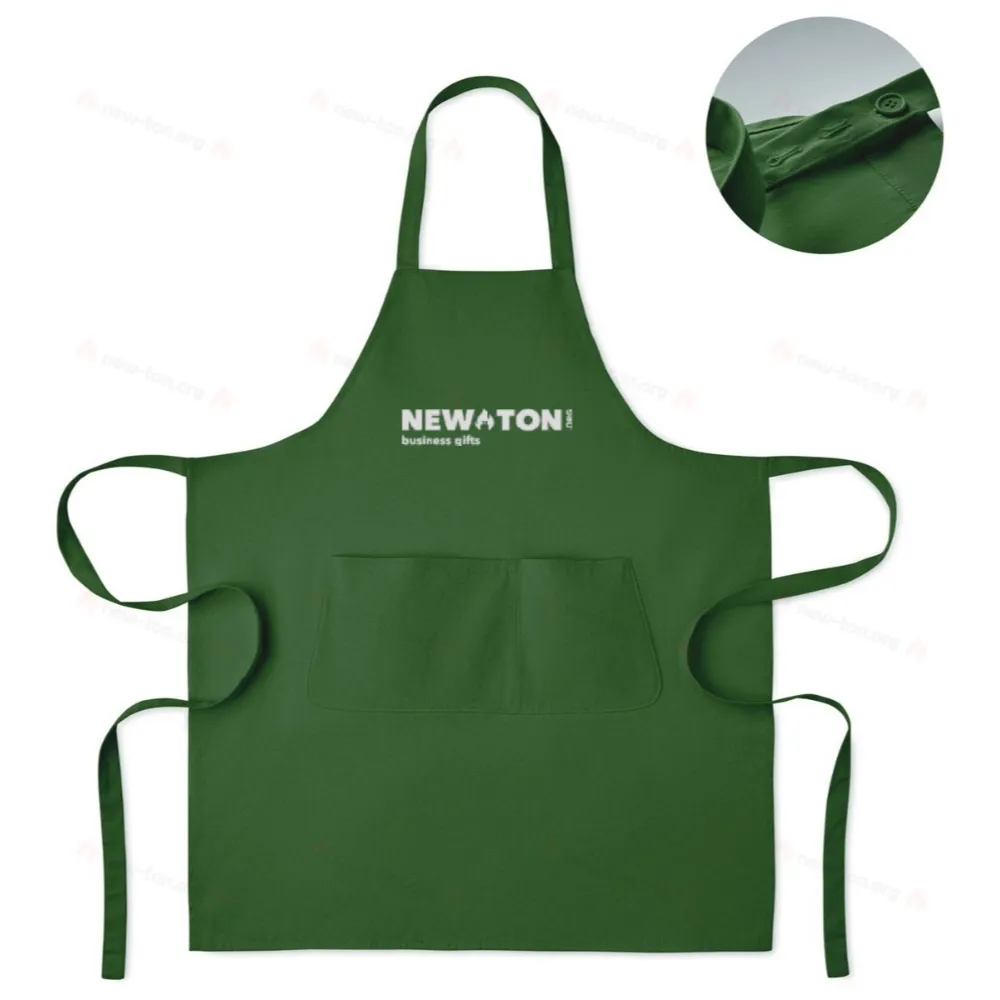 Кухонный фартук с большим передним карманом и двумя отделениями из органического хлопка плотностью 240 г/м². С регулируемым шейным ремешком.
