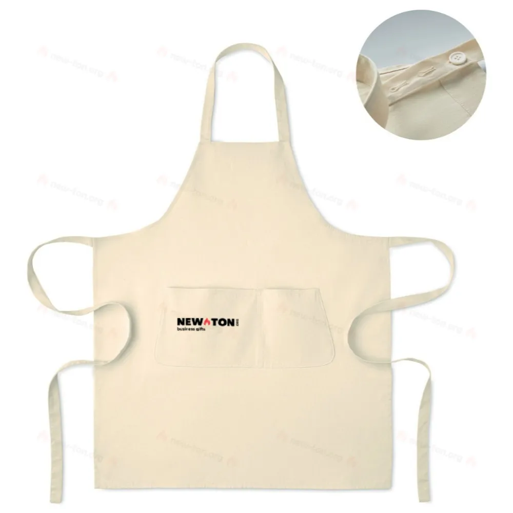 Регулируемый фартук с большим передним карманом и 2 отделениями из органического хлопка плотностью 240 г/м². С регулируемым ремешком на шее.