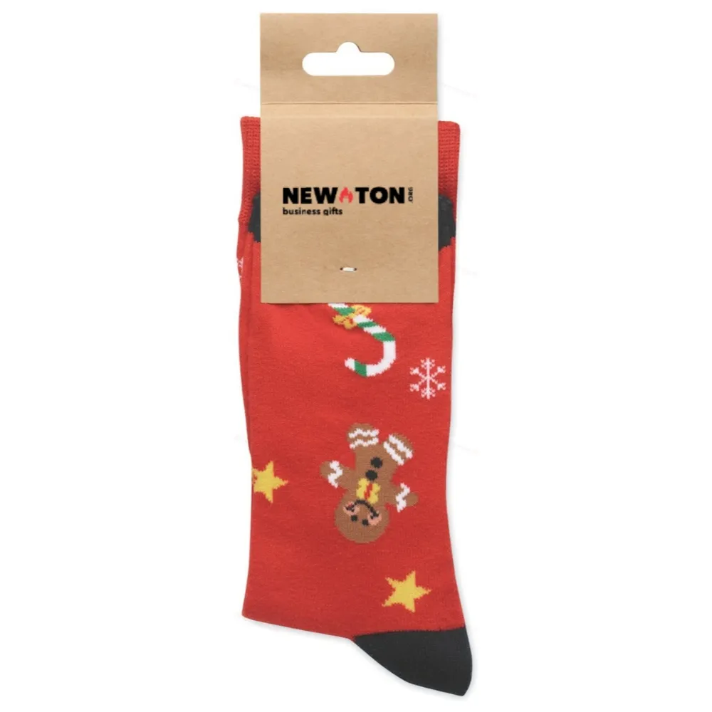 Пара новогодних носков из 75% хлопка, 23% полиэстера RPET и 2% спандекса. Размер L = 43-46.