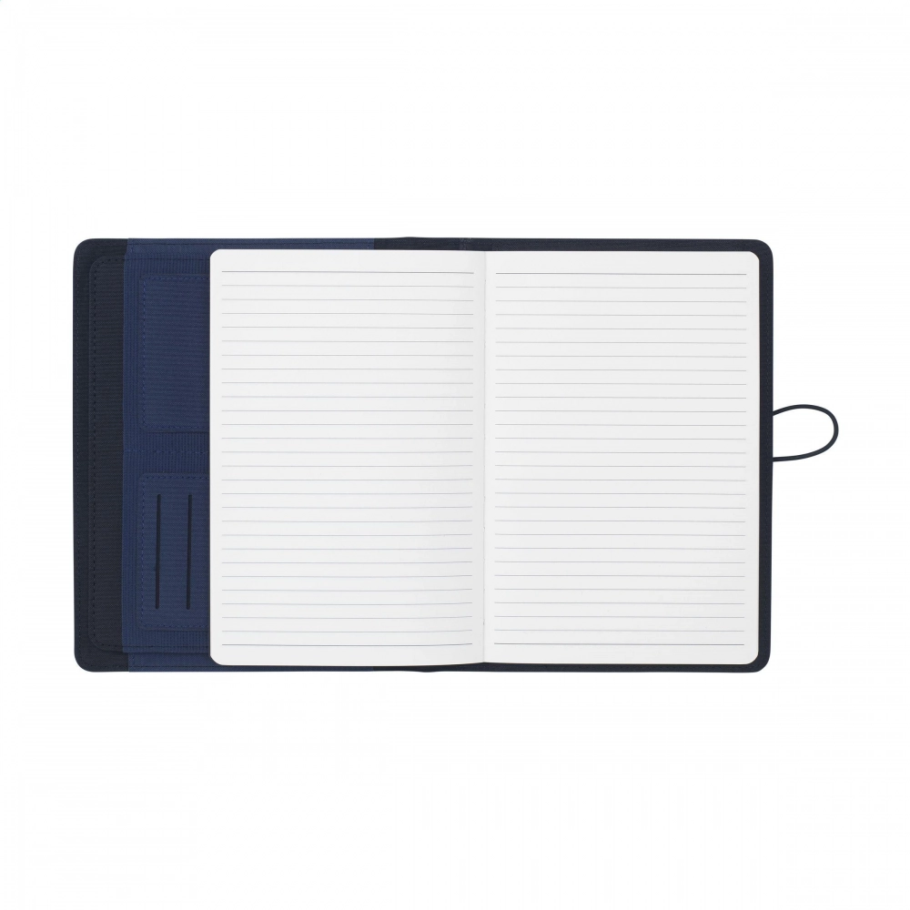 Современная папка для конференций/документов формата A5, изготовленная из материала RPET. Оснащена различными карманами, включая отдельный отсек для хранения мобильного телефона, два отделения для карт и петлю для крепления ручки. В комплект входит блокнот с примерно 64 листами кремовой линованной бумаги, сертифицированной FSC (70 г/м²).