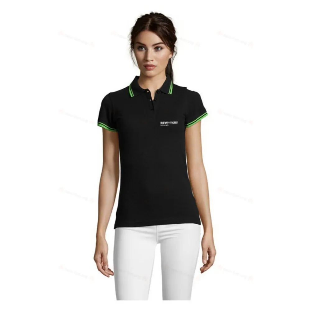 SOL'S PASADENA WOMEN, ЖЕНСКАЯ РУБАШКА-ПОЛО, 100% хлопковая ткань PIQUÉ 200, воротник и манжеты из ребристой ткани 1x1, усилительная лента на шее, короткие рукава, контрастные полоски на воротнике и манжетах, планка на 3 пуговицах в тон, приталенный крой, крой и пошив, боковые разрезы, запасная пуговица на внутреннем шве. Информацию о соответствии размеров см. в таблице размеров в разделе «Документация по продукту».