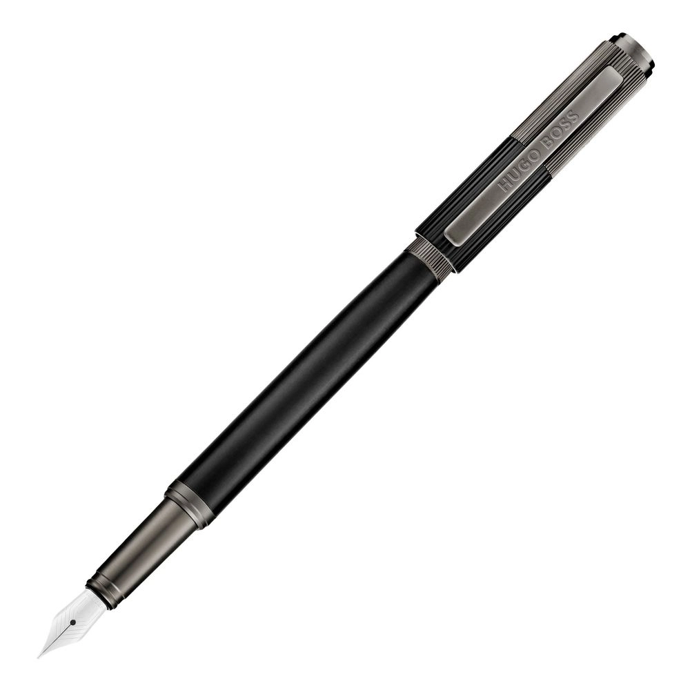 Перьевая ручка Striade привносит изысканный штрих в классический силуэт, исследуя взаимодействие двух масштабов тонких полосок, расположенных на колпачке. Этот контраст придаёт дизайну лёгкий индустриальный дух, добавляя текстуру и характер, при этом сохраняя минималистичное и сбалансированное присутствие в качестве инструмента для письма. Выполненная в матовом чёрном цвете с гравировкой в текстуре оружейного металла, она кажется тщательно продуманной, с учётом графических деталей, которые подчёркивают её вечную форму.