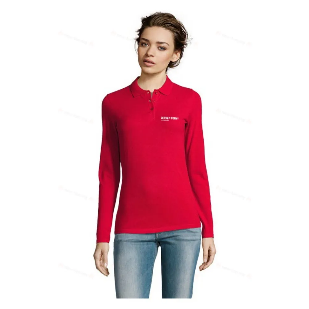 Идеальная женская длиннорукавая пикированная поло-рубашка SOL'S PERFECT LSL WOMEN, из 100% хлопка, плотностью 180 г/м², с воротником из ребристой ткани 1x1, длинными рукавами, застежкой на 3 пуговицы, приталенным кроем и лентой внутри воротника. Для определения подходящего размера обратитесь к таблице размеров в разделе документации по продукту.
