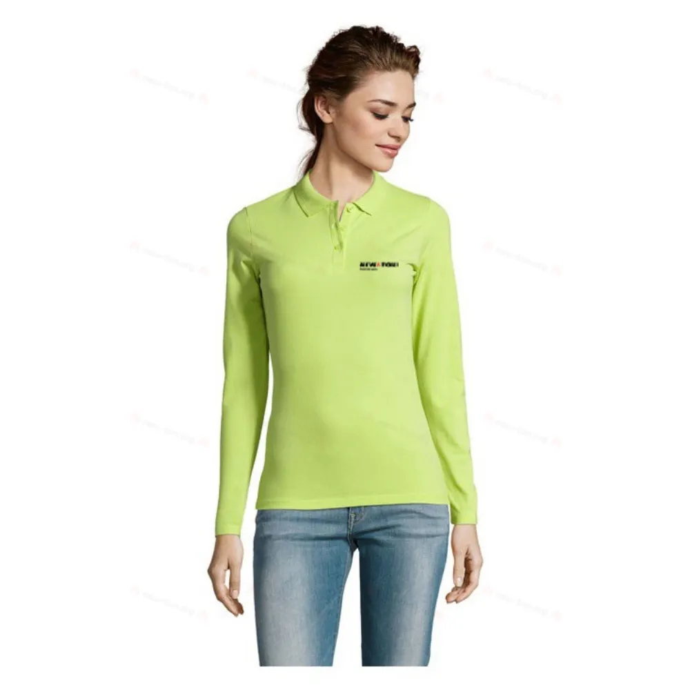 Идеальная женская длиннорукавая пикированная поло-рубашка SOL'S PERFECT LSL WOMEN, из 100% хлопка, плотностью 180 г/м², с воротником из ребристой ткани 1x1, длинными рукавами, застежкой на 3 пуговицы, приталенным кроем и лентой внутри воротника. Для определения подходящего размера обратитесь к таблице размеров в разделе документации по продукту.