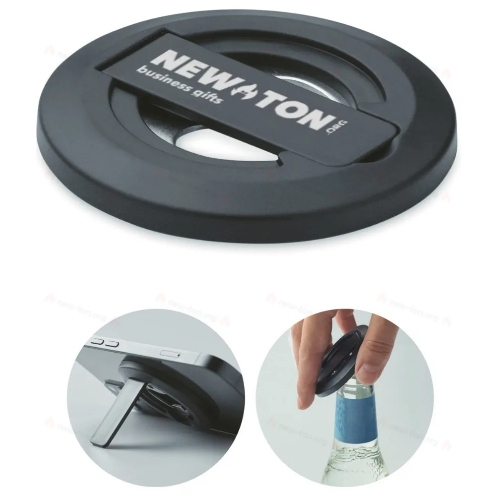 Магнитный держатель для телефона и открывалка для бутылки. Совместим с iPhone® 12 и новее. Включает дополнительное магнитное металлическое кольцо для зарядки других немагнитных беспроводных устройств.