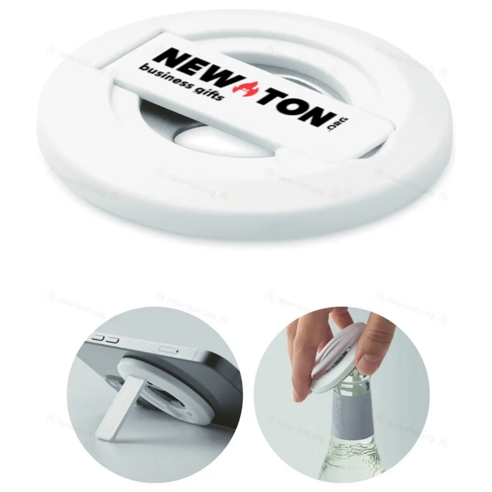 Магнитный держатель для телефона и открывалка для бутылки. Совместим с iPhone® 12 и новее. Включает дополнительное магнитное металлическое кольцо для зарядки других немагнитных беспроводных устройств.