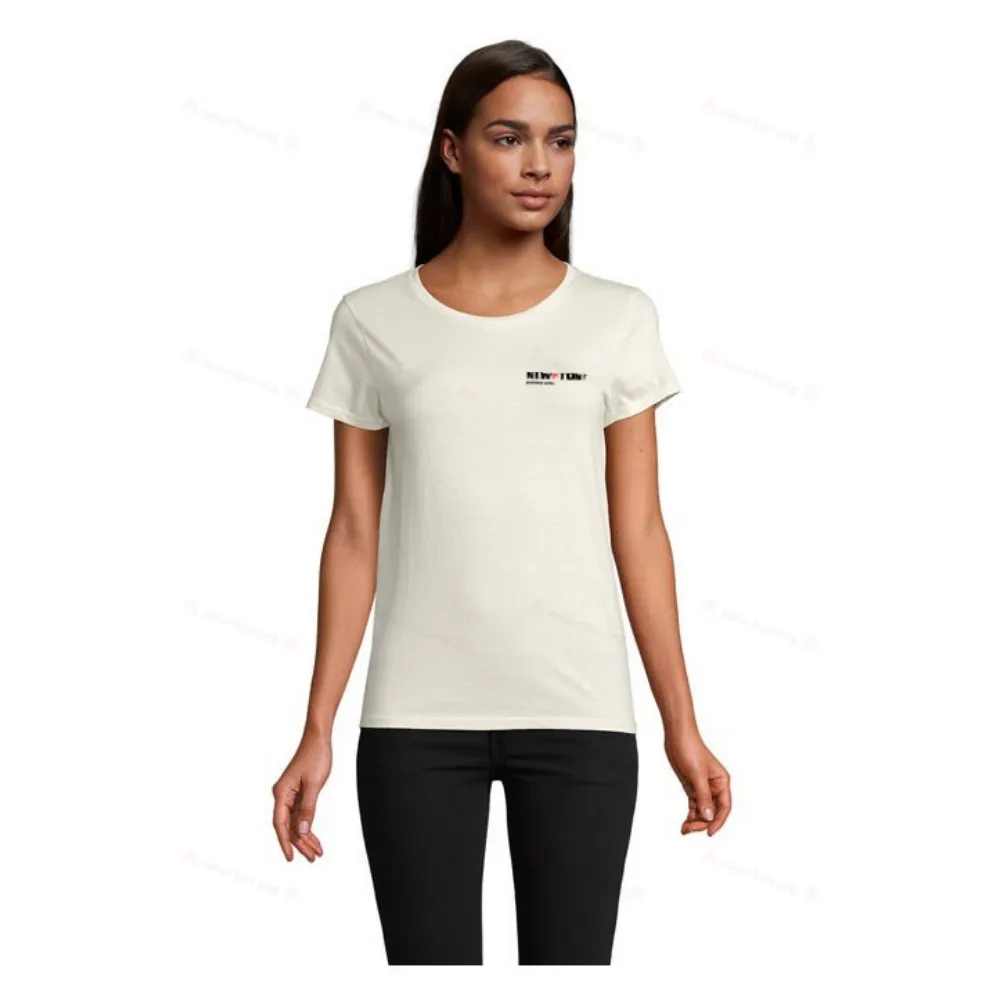 SOL'S PIONEER WOMEN, Женская облегающая футболка из джерси с круглым вырезом, 100% органически выращенный хлопок, Натуральная отделка для более мягкого и гладкого ощущения Джерси 175, Ребристый воротник из 100% хлопка, Круглый вырез, Лента на шее, Приталенный крой, Трубчатый, (1) пепельный : 98% органический хлопок / 2% вискоза, (2) серый меланж : 85% органический хлопок / 15% вискоза. Соответствие размеров см. в таблице размеров в разделе документации к изделию.