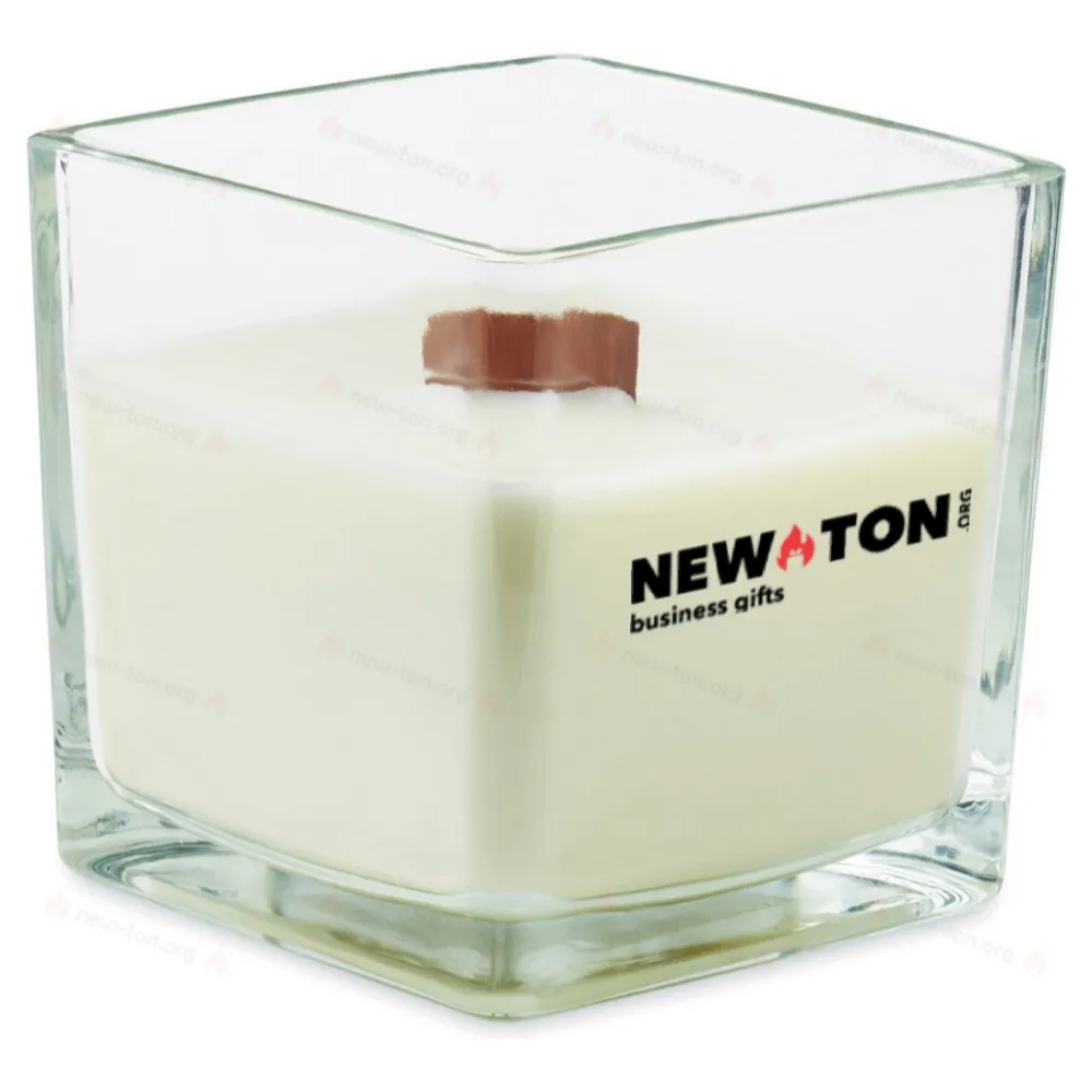 Большая восковая свеча на растительной основе с ароматом ванили 600 г в стеклянном подсвечнике с деревянным фитилем и изображением улья сверху. Время горения 65 часов