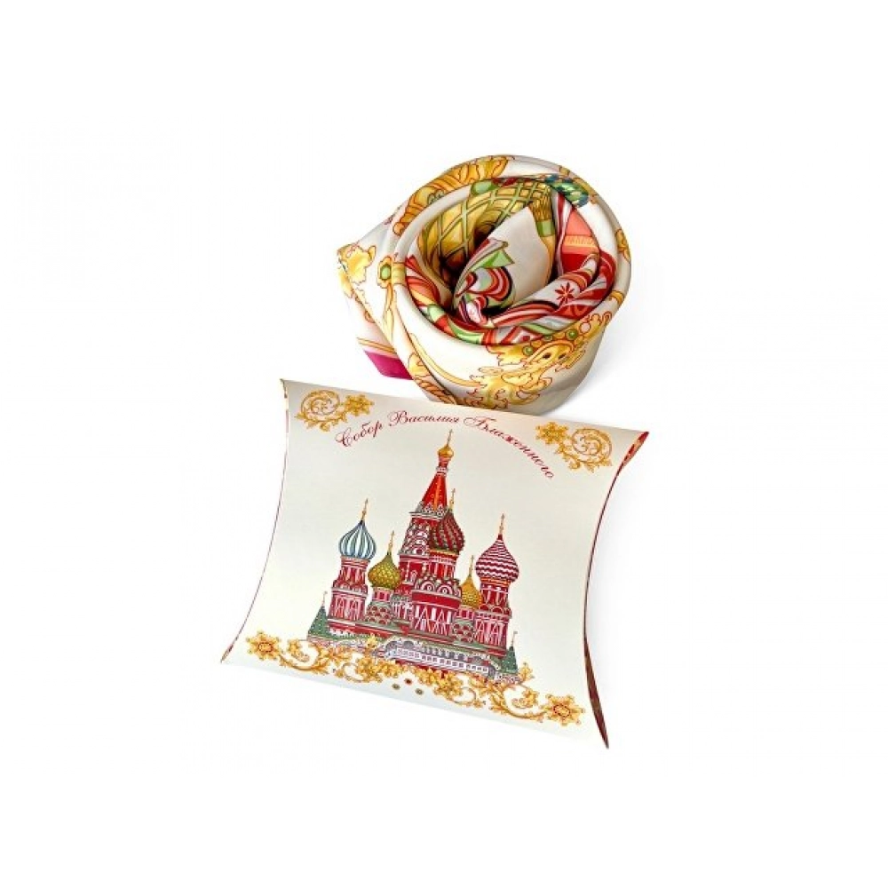 Сказочный вид собора отражен на золотом фоне новинки от бренда «Русские в моде» by Nina Ruchkina. Настоящее восьмое “чудо Света” обрамлено царскими коронами и райскими птицами, свидетельствующими об уникальности и роскоши этой исторической достопримечательности, отстроенной 1 октября 1552 года на праздник Покрова Богородицы.