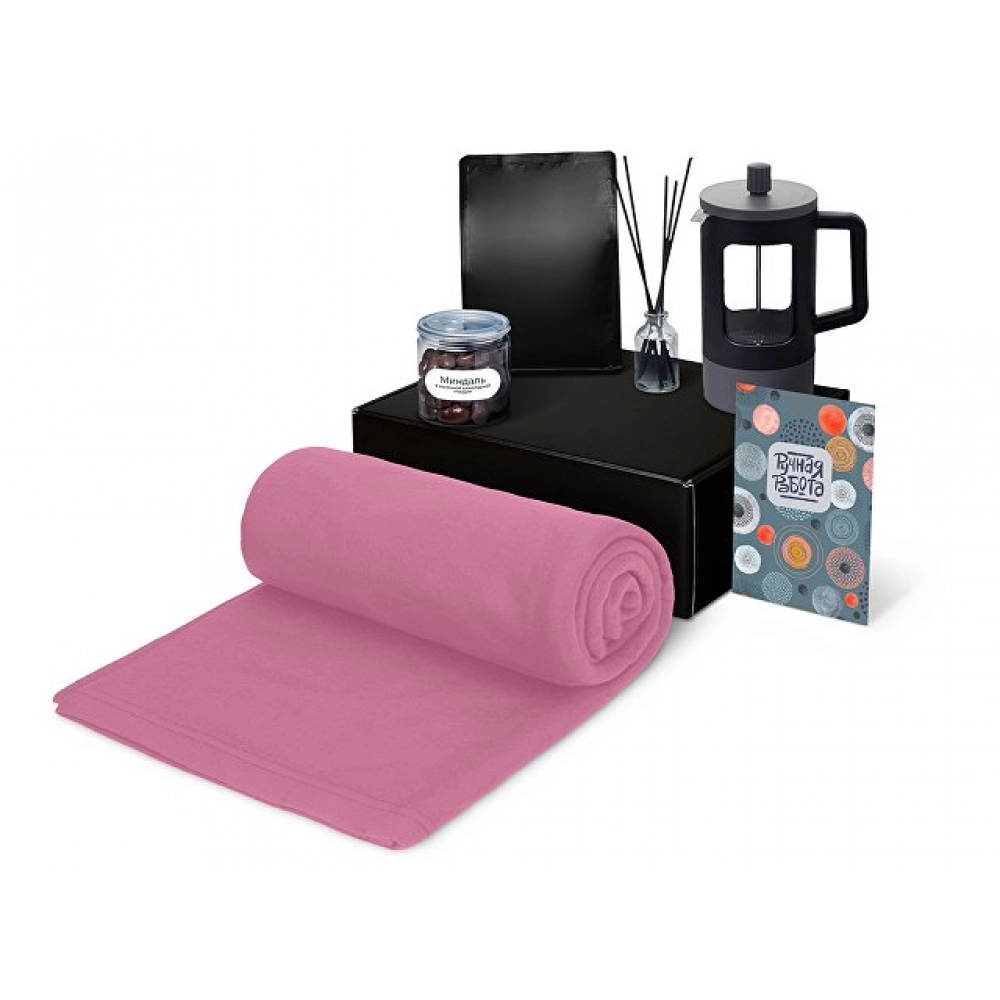 плед - флис, полиэстер, кофе - пластик, френч-пресс - нержавеющая сталь, боросиликатное стекло, ПП пластик, диффузор - стекло, миндаль - пластик, мешок - нетканый материал (спанбонд), коробка - картон