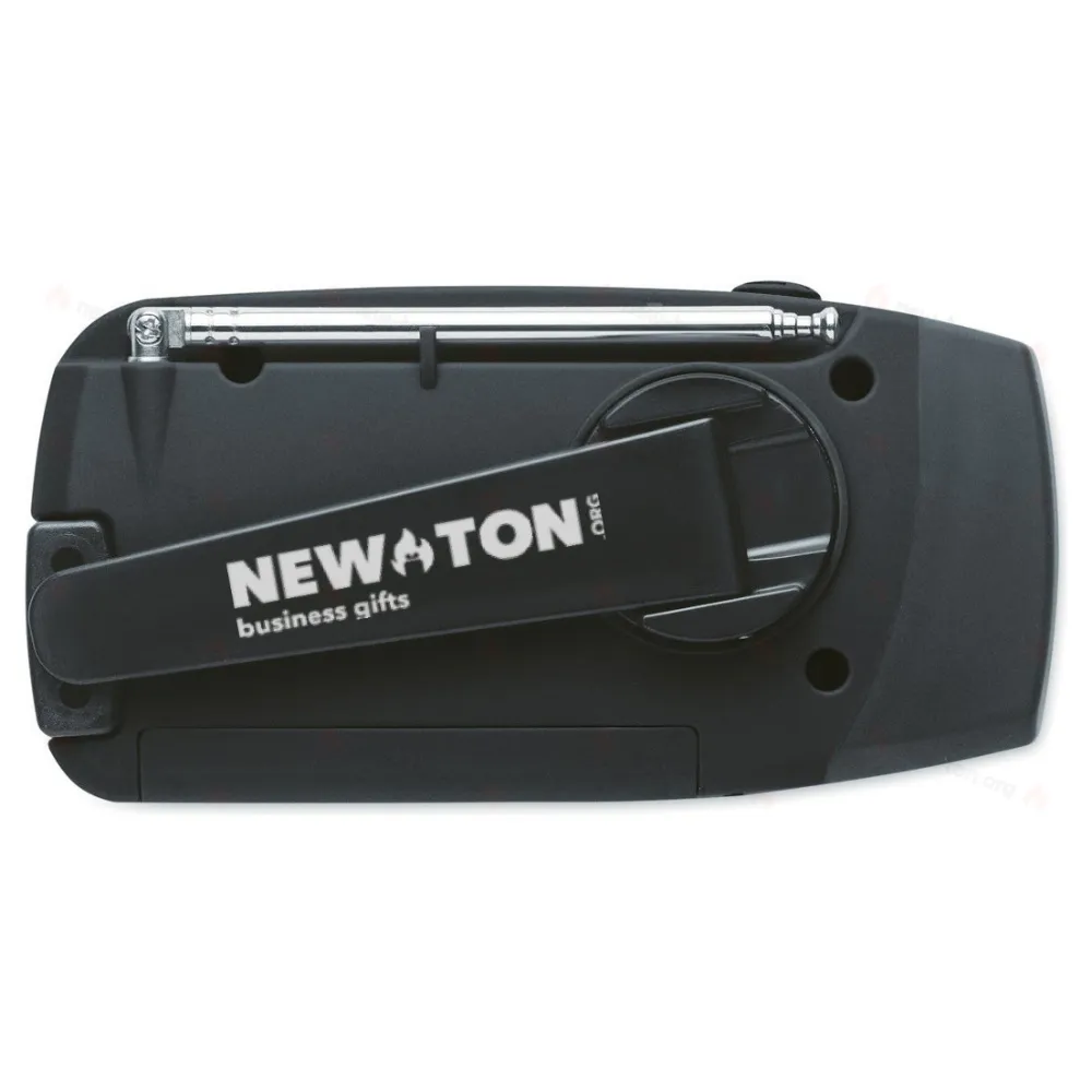 Портативное радио AM/FM из пластика со светодиодным фонарем (2 режима) и аккумулятором ёмкостью 1200 мАч для экстренной зарядки. Питание от солнечной батареи и ручного привода.