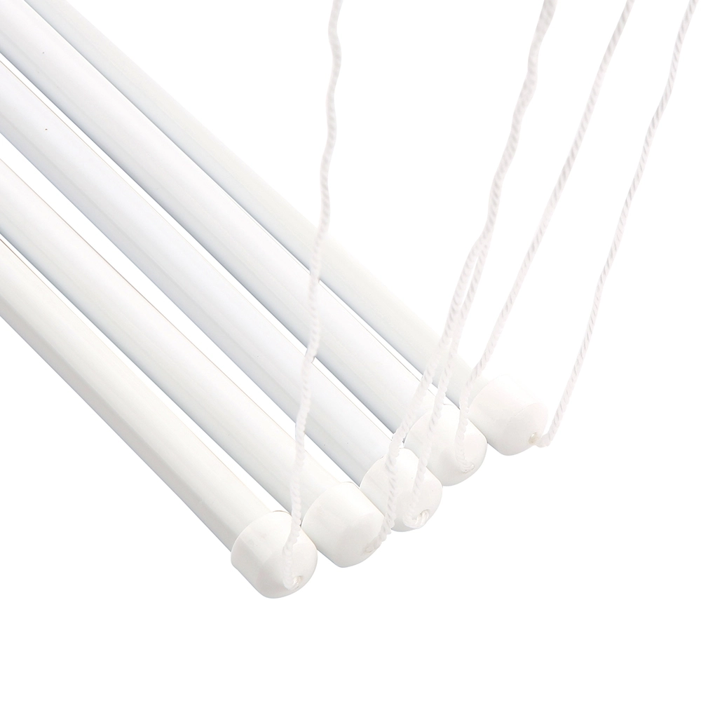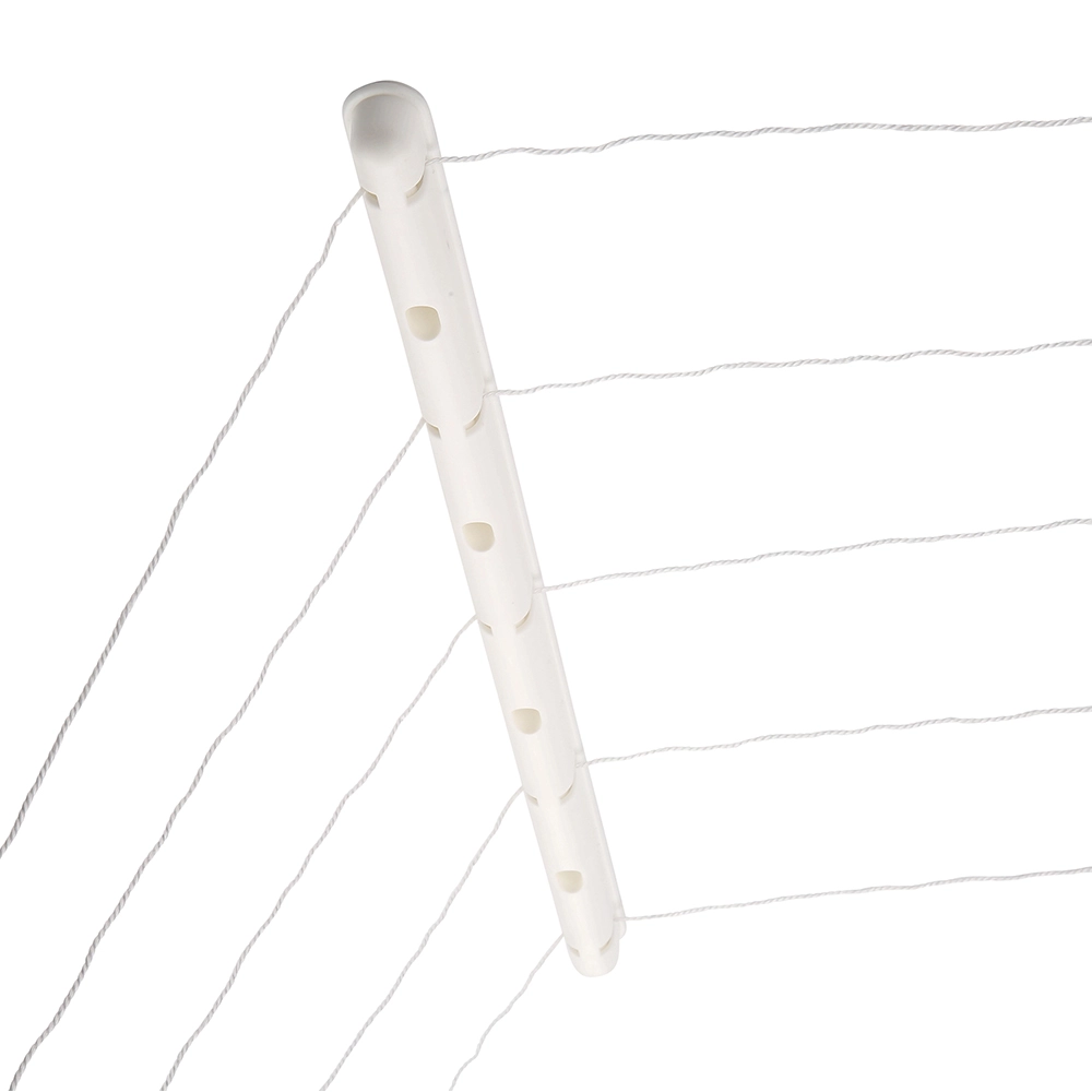 Потолочная сушилка - это идеальное решение для небольших ванных комнат. Она устанавливается под потолком, а специальный механизм позволяет опускать веревки на удобную высоту. После развешивания белья можно подтянуть веревки выше, чтобы оно не мешало другим делам. Благодаря этому больше не нужно забираться на табуретки и лестницы, чтобы повесить белье высоко на веревках. Особенно рекомендуется для пожилых людей. Сушилку можно также установить на балконе, и, подтянув ее под самый потолок, освободить место под ней. Благодаря использованию толстых металлических стержней длиной 140 см, белье после сушки не имеет следов от складок, что облегчает глажку.