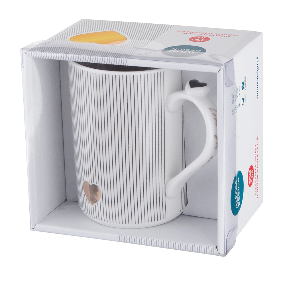 Прямая кружка с рельефным сердцем NBC 350 мл в подарочной коробке с ПВХ окном.