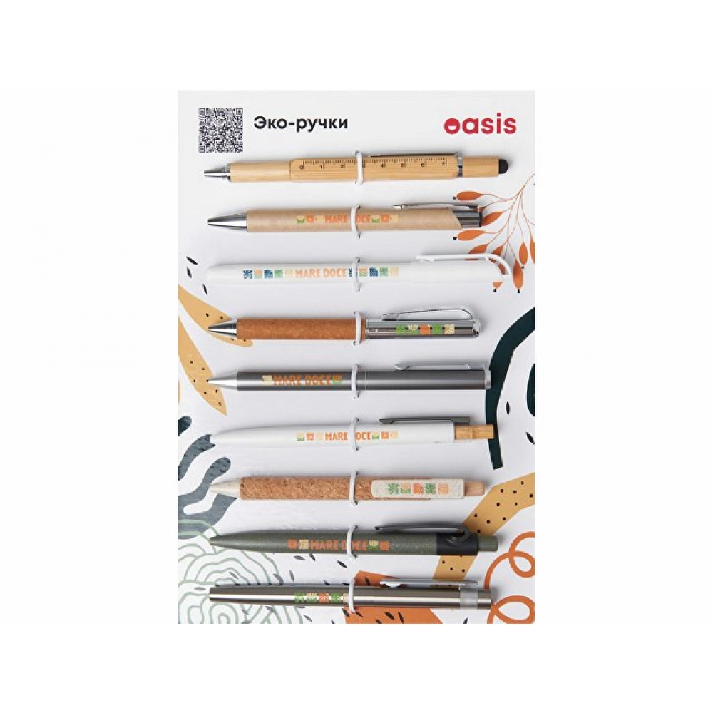 Промо-сет ЭКО ручек — это презентационный комплект, включающий 9 уникальных моделей с несколькими вариантами нанесения: УФ-печать, тампопечать. В сете представлены самые хитовые позиции категории ЭКО, а также новинки каталога периода зима-весна 2026 года. Все образцы аккуратно закреплены на стильной картонной подложке при помощи резинового фиксатора. На обратной стороне указаны названия и краткое описание моделей. Промо-набор — идеальный инструмент для презентаций: клиенты могут подержать ручки в руках, опробовать их на письме и наглядно увидеть различия между видами нанесения. При этом все самые важные модели собраны в одном легком и компактном наборе.