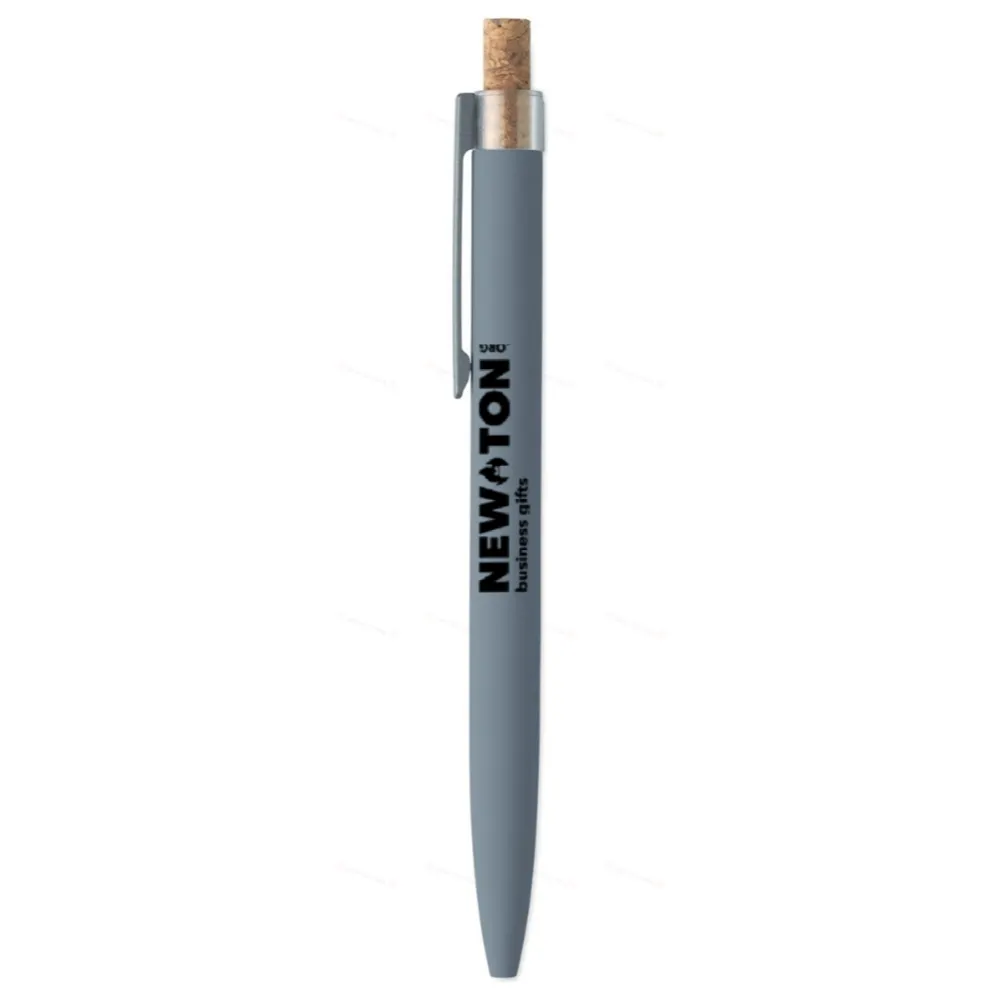 Шариковая ручка из переработанного алюминия с кнопкой из пробки и металлическим зажимом. Синие чернила.