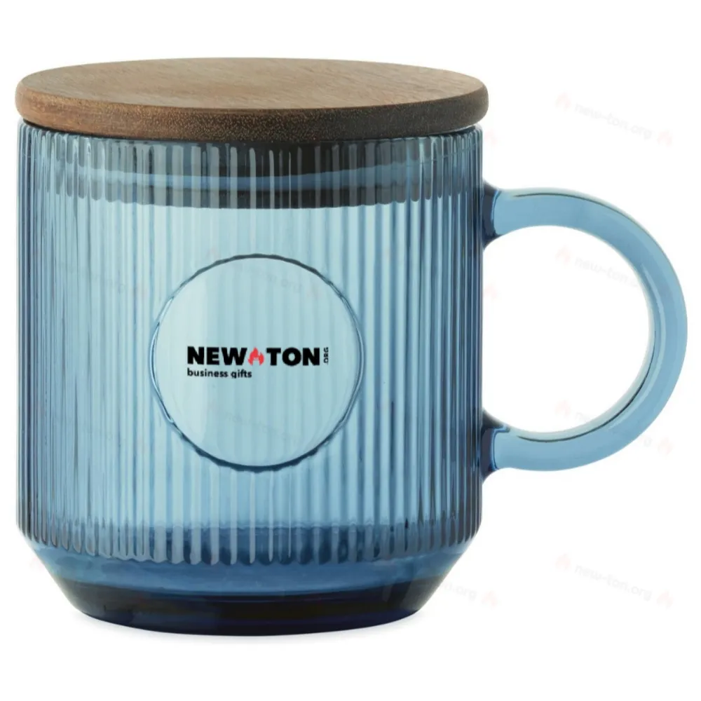 Стеклянная ребристая кружка с крышкой из древесины акации. Объём: 300 мл.