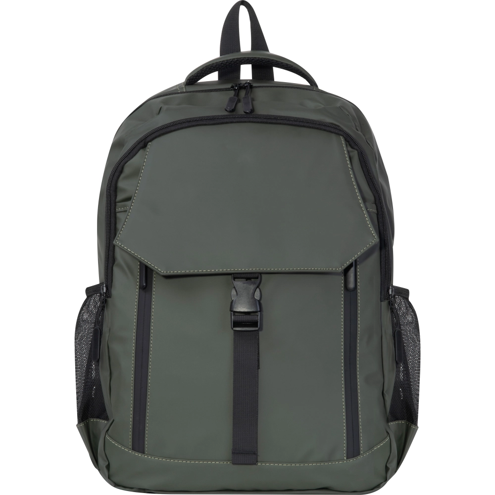 Рюкзак из высококачественного мягкого на ощупь полиуретана. Этот рюкзак имеет два больших основных отделения, два боковых кармана, водоотталкивающие передние молнии, мягкие плечевые лямки, а также отделение для ноутбука и передний карман.