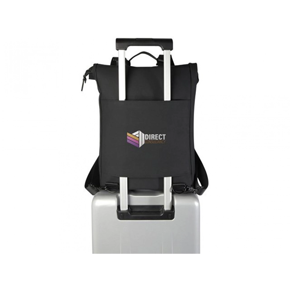 Рюкзак со сворачивающимся верхом Turner на 51% изготовлен из переработанного пластика, сертифицированного по стандарту GRS, а подкладка изготовлена из 100% переработанного ПЭТ-пластика, сертифицированного GRS. Рюкзак имеет мягкое отделение для ноутбука с диагональю 15,6 дюйма, мягкое отделение для планшета, внутренний ремешок для хранения бутылки с водой и карман на молнии для мелочей. Основное отделение имеет сворачиваемый верх, который можно надежно застегнуть с помощью пряжки. Кроме того, багажный ремень на задней стороне позволяет легко прикрепить рюкзак к чемодану на колесиках, что делает его удобным спутником в путешествии. Объем: 12 литр. 51% GRS recycled PU, 49% PU.