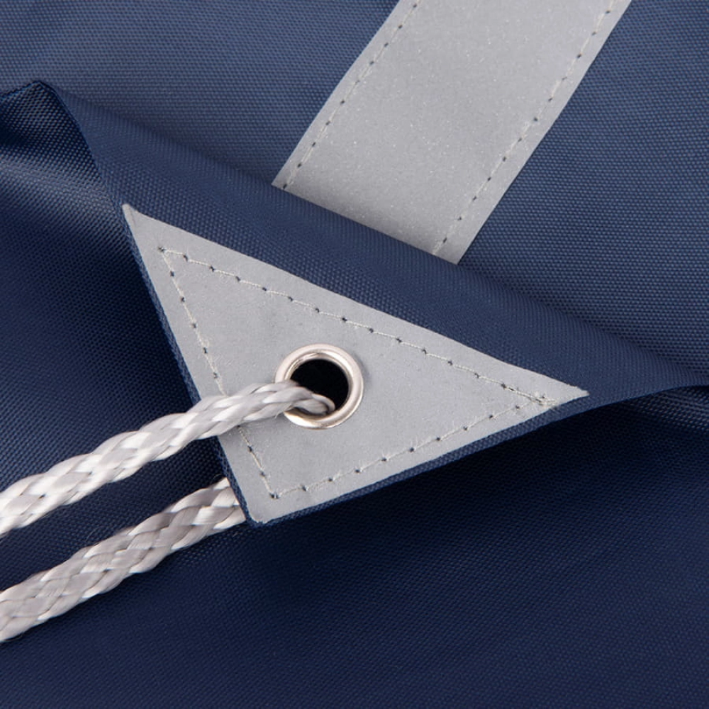 Рюкзак-мешок RAY из полиэстера 210Dсо светоотражающей полосой спереди, светоотражающими уголками,усиленными металлическими люверсамиЛегко и просто затягивается по верхней части серыми шнурами.
