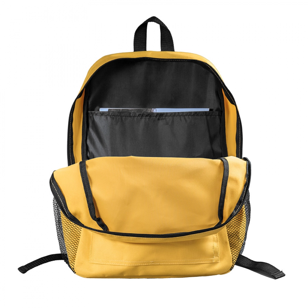 Рюкзак из прочного полиэстера 600D с застежкой-молнией и передним карманом, усиленными углами, пуллерами черного цвета. Мягкая спинка, регулируемые плечевые лямки.