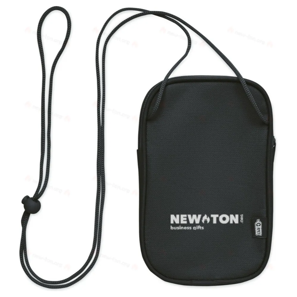 Дорожная сумка кроссбоди из полиэстера RPET 600D с подкладкой из RPET 210D и ремешком.