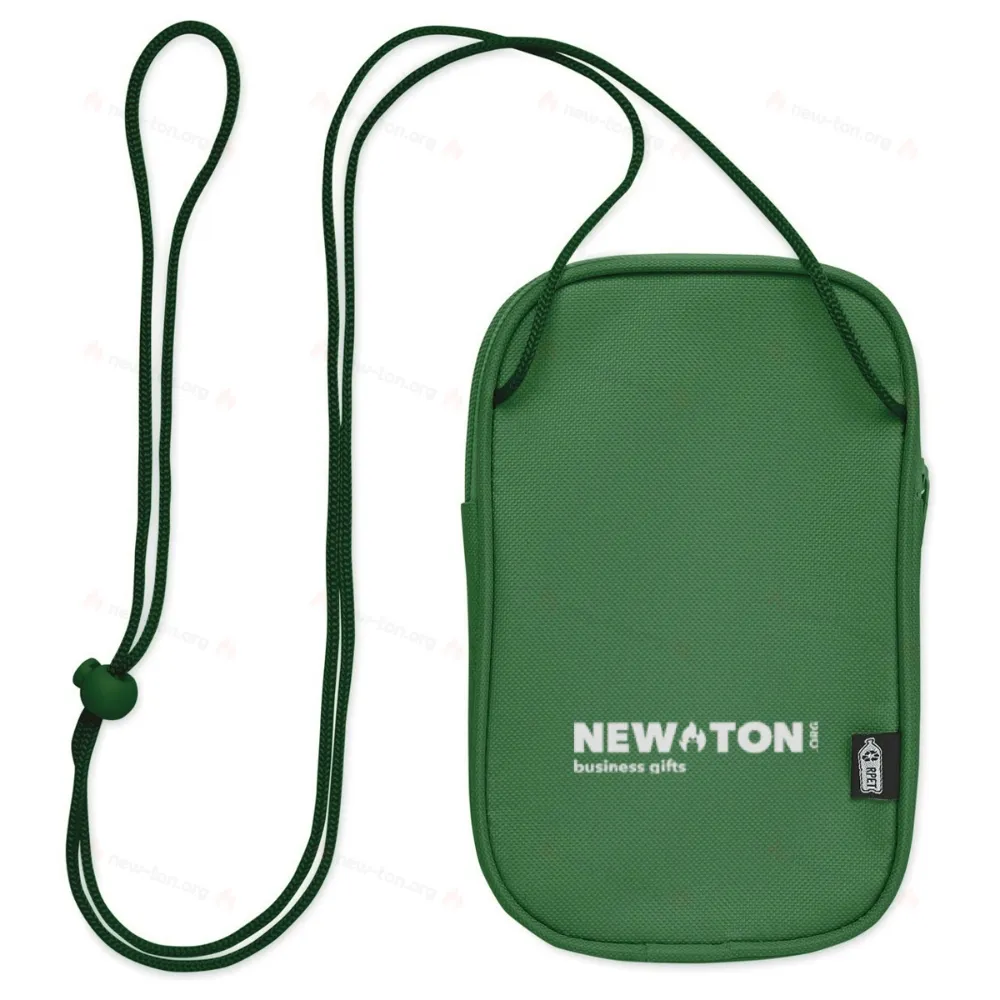 Дорожная сумка кроссбоди из полиэстера RPET 600D с подкладкой из RPET 210D и ремешком.