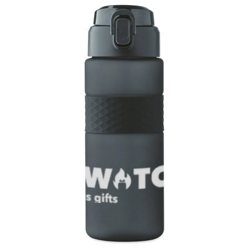 Бутылка для питья из RPET с силиконовой ручкой, встроенной трубочкой, откидной крышкой из PP и замком от проливания. Герметичная. Объём: 700 мл.