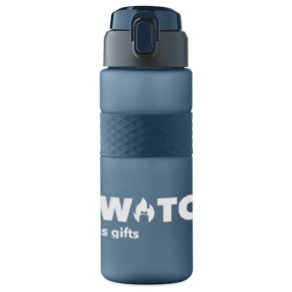 Бутылка для питья из RPET с силиконовой ручкой, встроенной трубочкой, откидной крышкой из PP и замком от проливания. Герметичная. Объём: 700 мл.
