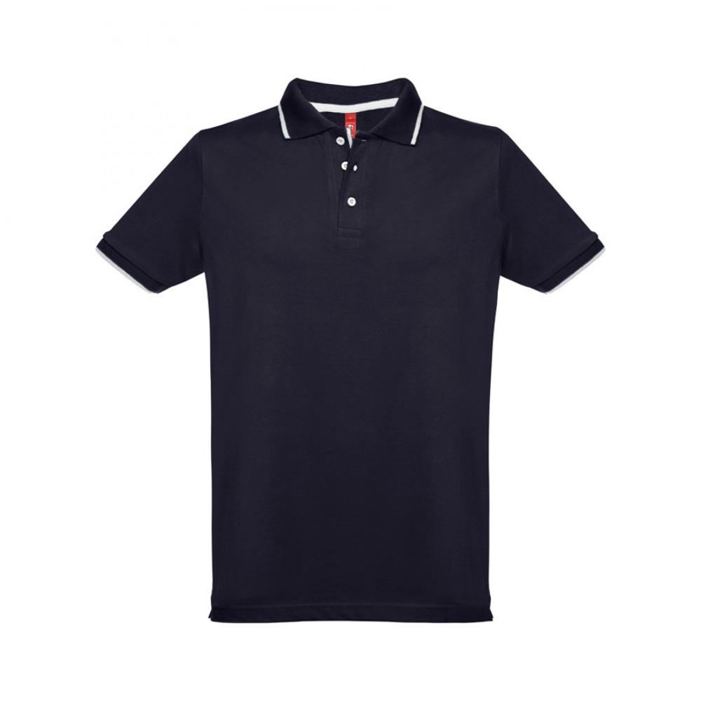 Мужская рубашка-поло из хлопковой ткани-пике. Полотно футболки упругое и гладкое благодаря обработке ферментами "enzyme wash" и сохраняет форму при стирке. Модель полуприлегающего силуэта. Благодаря манжете из риба 1х1 рукав смотрится очень аккуратно. Воротник также выполнен из риба 1х1, внутри ворота - укрепляющая тесьма по горловине. Манжета на рукавах и край воротника выполнены контрастным цветом. Планка с 3 контрастными пуговицами. Запасная пуговица на ярлыке во внутреннем боковом шве.