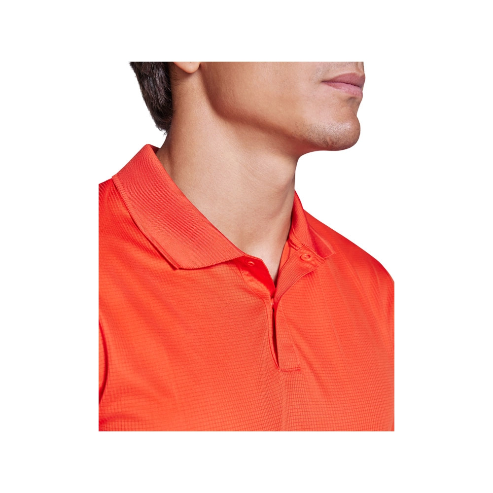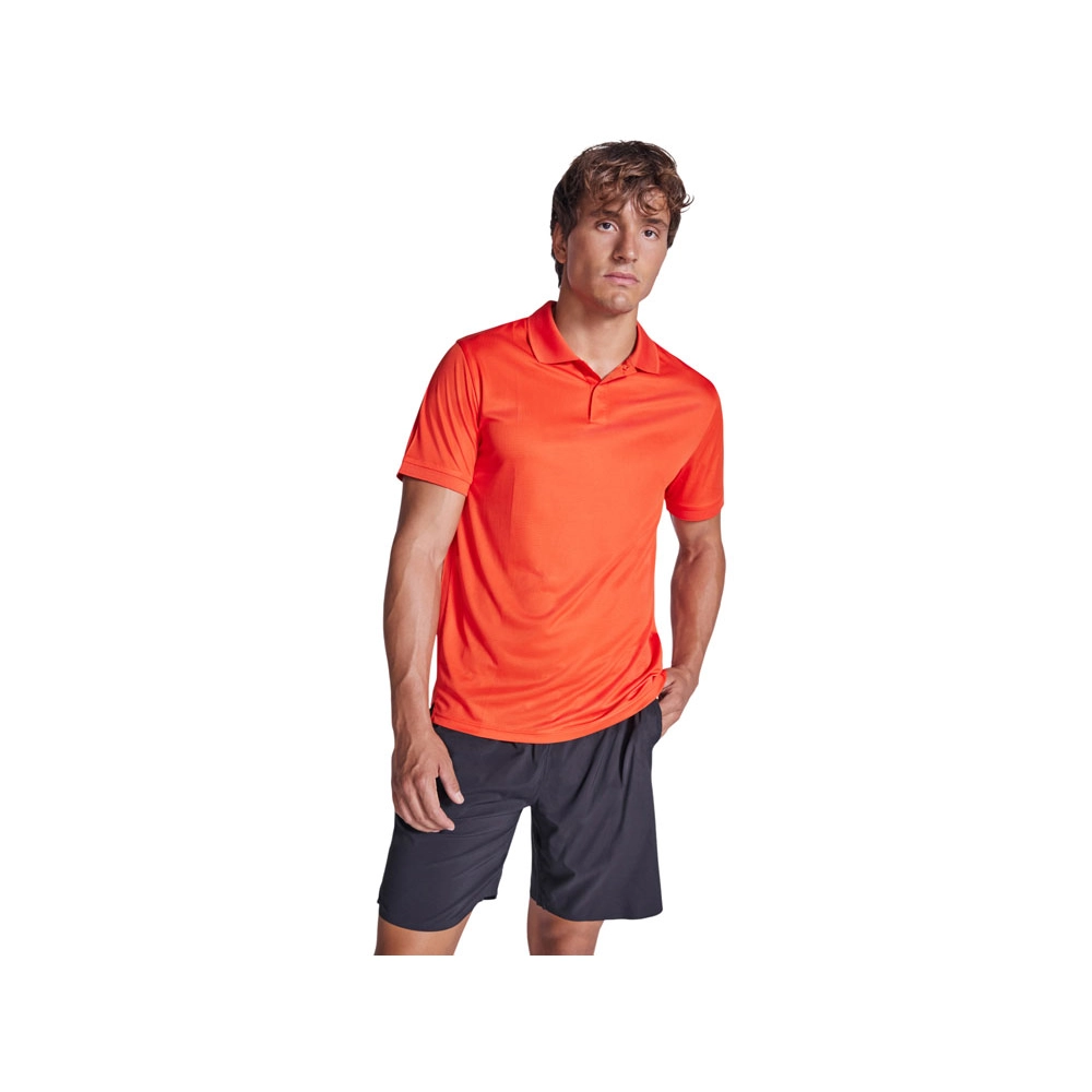 Мужское поло с коротким рукавом из технологичного полотна. Рибовый воротник 1х1, застежка на кнопки. Отстрочка в тон. Рибовые манжеты.