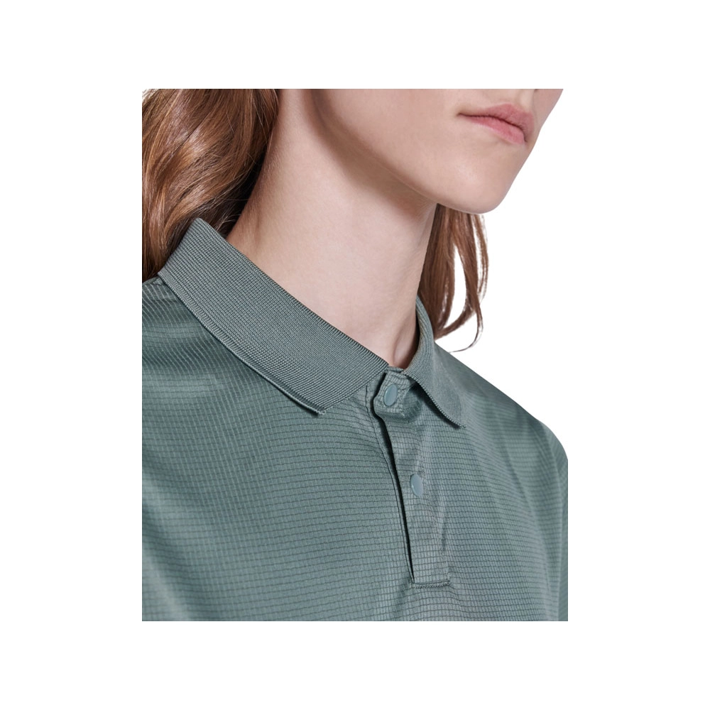 Женское приталенное полос коротким рукавом из технологичного полотна. Рибовый воротник 1х1, застежка на кнопки. Отстрочка в тон. Рибовые манжеты.