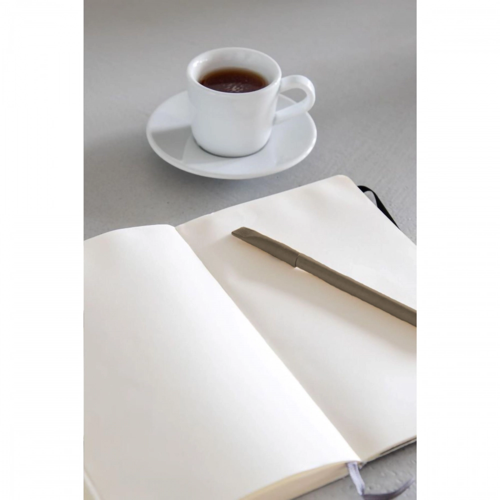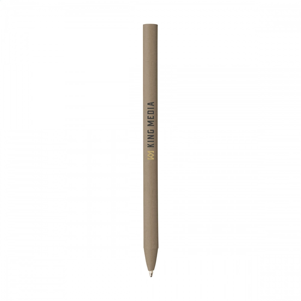 Корпус и колпачок этой шариковой ручки с синей пастой изготовлены из плотно свернутой переработанной бумаги.