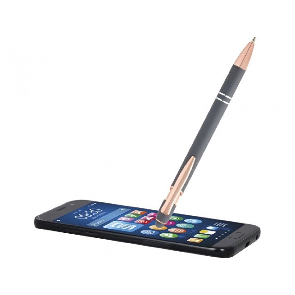 Шариковая ручка Nanna с покрытием из розового золота имеет корпус из переработанного алюминия и сенсорный стилус из силикона. Переработанный алюминий уменьшает количество отходов на свалках и помогает сохранять природные ресурсы для сокращения выбросов парниковых газов. Цвет чернил: черный. Длина непрерывной линии: 800 метров. Размер пера: 1,0 мм. Recycled Aluminium.