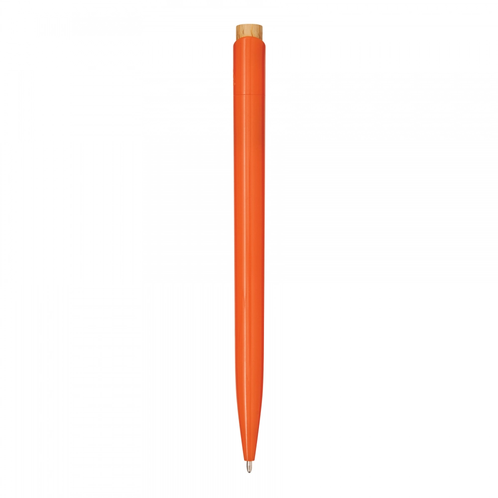 Шариковая ручка BAPU: корпус из переработанного пластика, нажимной механизм, кнопка из бамбука, синий чернила