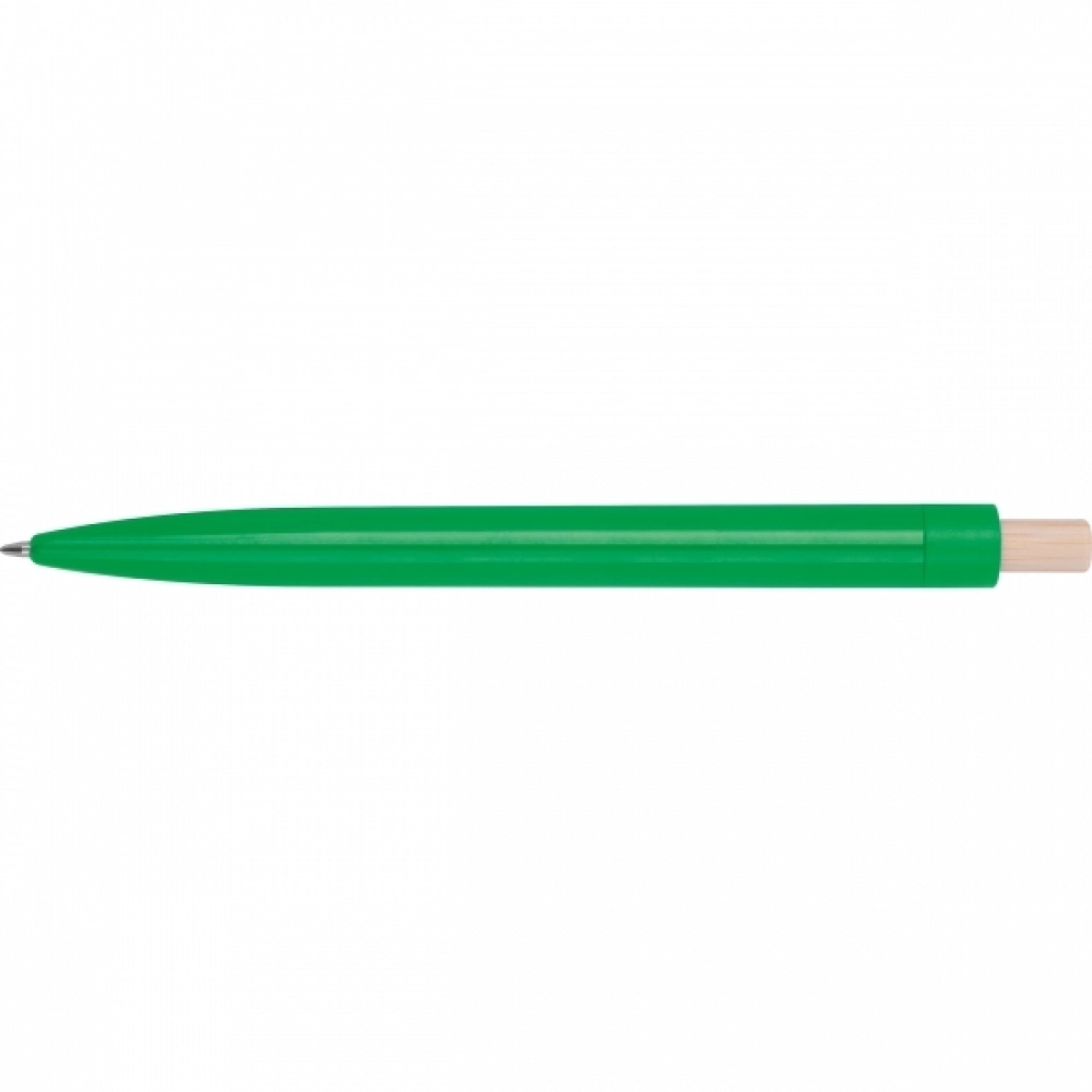 Шариковая ручка из переработанного ABS с нажимной кнопкой из бамбука. Она оснащена синим пластиковым стержнем для письма. Ваш логотип наносится на корпус ниже клипа.