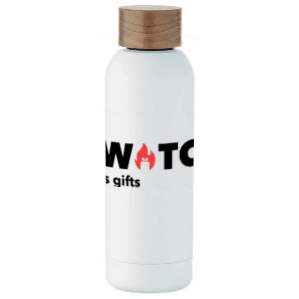 Термобутылка из переработанной нержавеющей стали 90% и 10% нержавеющей стали с резиновым покрытием и крышкой из древесины акации. Герметичная. Емкость: 700 мл. Стенки бутылки могут нагреваться.