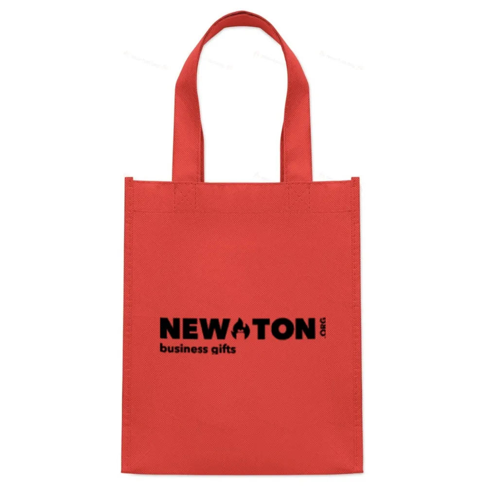 Небольшая подарочная сумка из нетканого материала RPET с короткими ручками и ластовицей. 80 г/м².