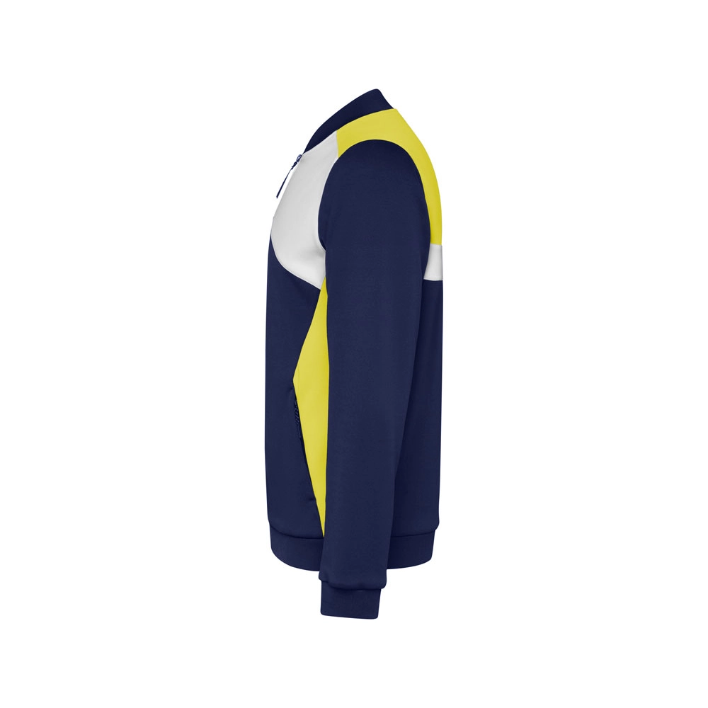 Спортивная куртка на молнии. Боковые карманы закрываются на молнию. Воротник, манжеты и низ из риба 1х1. Ассиметричная левая сторона спроектирована специально для вышивки. Может быть с комбинирована с брюками Rhodes.